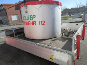 Biete einen gebrauchten Ölseperator Anhänger ( ÖLSEP) Es ist einfach gesagt ,ein fahrbarer Ölabscheider. Aufbau Firma Schmitz .Ideal bei Gewässerverunreinigungen oder Ölunfällen . Öl/ Wassergemische können direkt an der Einsatzstelle durch verschiedene Kammern und Filter wieder in Öl und Wasser getrennt werden. Das saubere Wasser kann wieder zurück ins Gewässer und das Öl wird in einem seperatem Tank mit 250 Liter Fassungsvermögen gesammelt werden..Zubehör wie abgebildet im Lieferumfang enthalten. Anhänger 2 achs mit zulässigem gesamtgewicht von 2000 kg , Länge 5450 mm ,Breite 2370 mm, Fassungsvermögen im Betriebszustand 3400 Liter. Anhänger Deichsel für Zugmaul.Erstzulassung des Anhänger 30.08.1994 , Gebaut durch VAR Fahrzeug und Appartatebau . klappbare Seitenwände und Teilbereiche Heck aus Alu. Betriebsanleitung vorhanden. Leistung  54000 Liter / h .