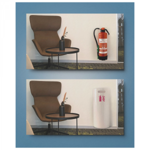 Haben Sie sich auch schon öfters gefragt, wie Sie ihren Feuerlöscher in Ihr perfekt aufeinander abgestimmtes Interieur integrieren können? Diese Frage ergibt sich in gewerblichem Rahmen, wie auch im privaten Raum. Die Dönges Design Abdeckung für Feuerlöscher besticht durch ihr schlichtes Understatement: "weniger ist mehr". Das pulverbeschichtete Stahlblech ist aus einem Stück geformt und geschmackvoll in die richtige Form gebogen. Das Design ist klar und in edlem Weiß gehalten. Ein Feuerlöscher muss in jedem Büro oder Haushalt ein wichtiges Sicherheitsutensil sein. Daher darf er niemals versteckt werden, jedoch kann man ihm durchaus ein attraktives Äußeres verleihen. Die Dönges Design Abdeckung passt sich aufgrund ihres minimalistischen Designs in jedes Ambiente ein. Die weiße Wandkonstruktion aus gekantetem Stahlblech wird durch ihr formschön gelasertes Piktogramm mit Feuerlöscher-Symbol und Flamme in Rot sofort als "der Retter in der Not" identifiziert. Somit ist der zwingend erforderliche Feuerlöscher zwar aus dem alltäglichen Blickfeld, aber im Notfall doch schnellstens zur Hand! Die Dönges Design Abdeckung kann im Handumdrehen durch die Aussparung an der Rückseite mit zwei oder vier Schrauben an der Wand befestigt werden und ist somit im Notfall sofort einsatzbereit.
