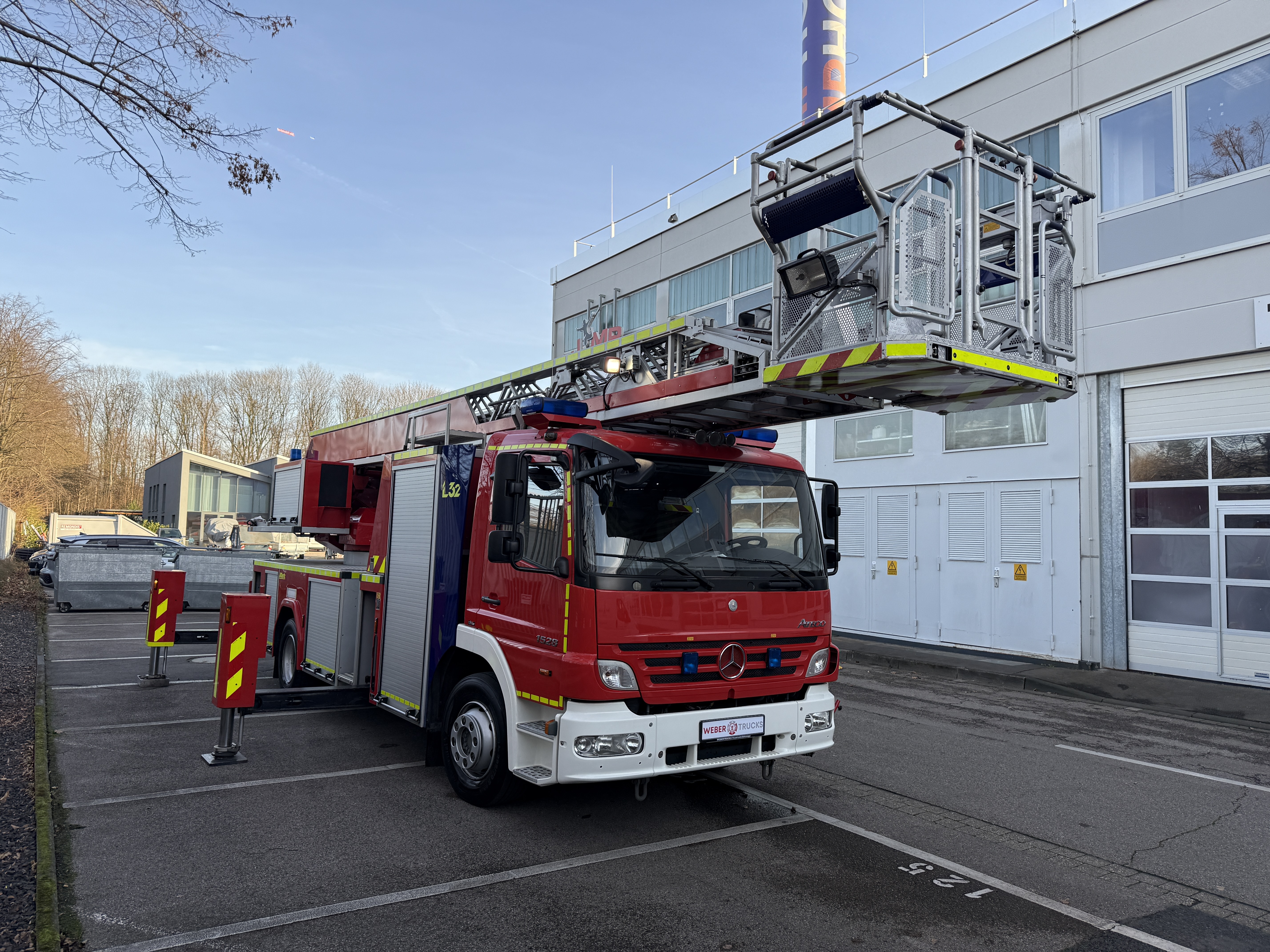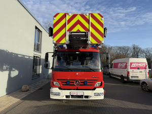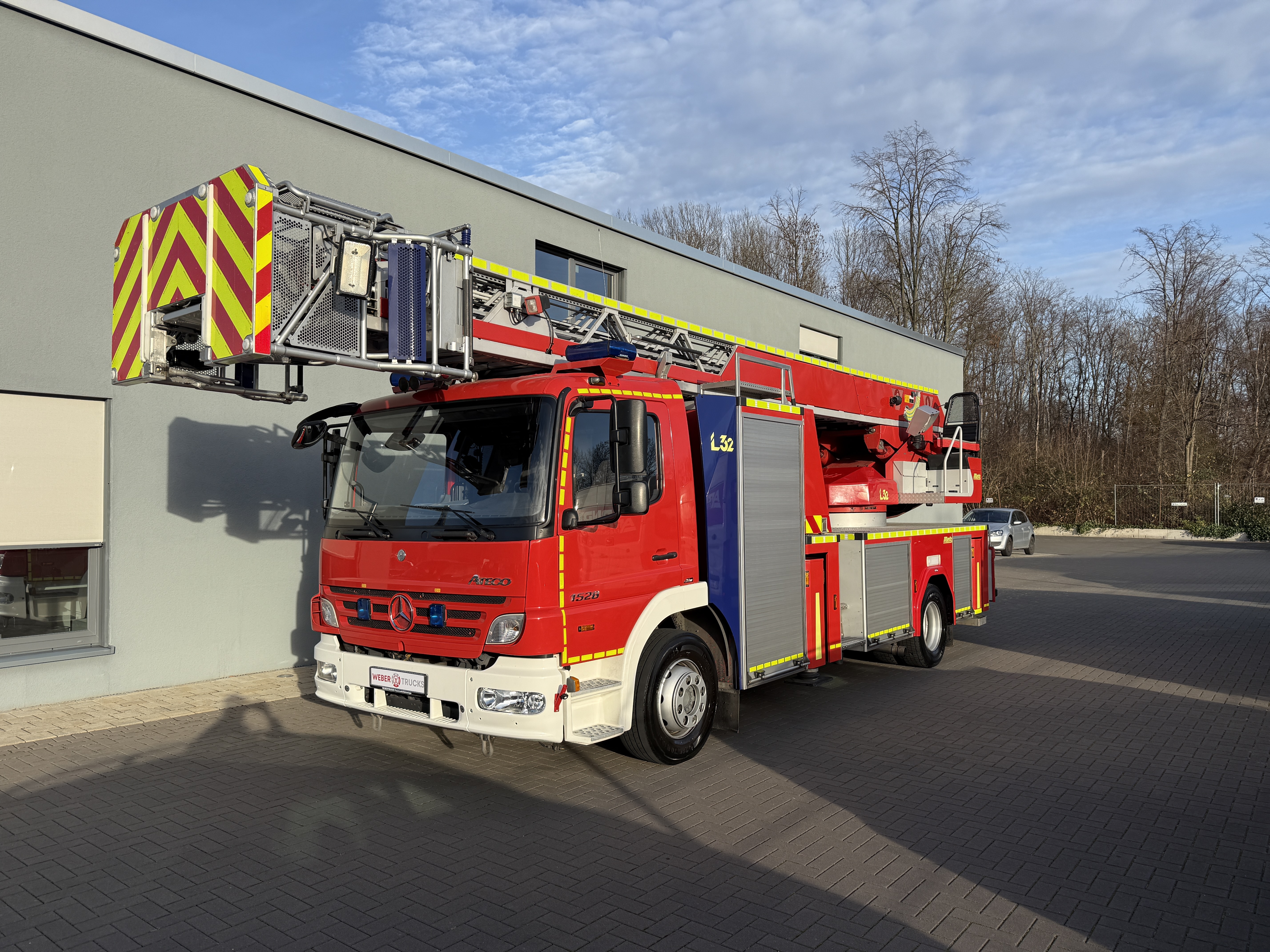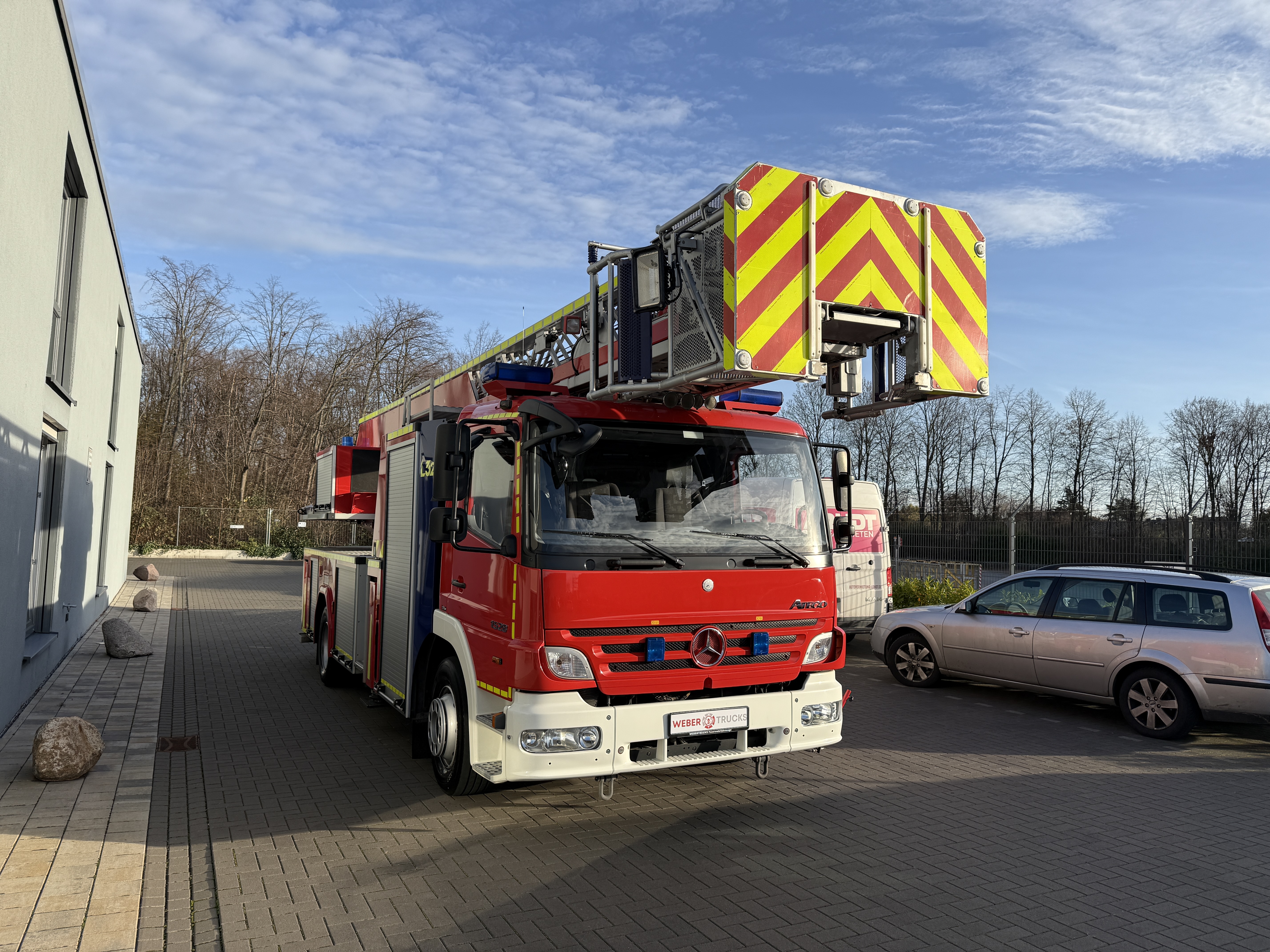 Mercedes-Benz Atego 1528F / Drehleiter DLK 23/12 Aufbauhersteller: Rosenbauer Getriebe: Allison-Automatik zul. Gesamtgewicht: 15.000 Kg Leergewicht: 13.650 Kg Anzahl Sitzplätze: 3 Leistung: 205 kW Hubraum: 6.374 cm3 Erstzulassung: 11/2006 Kilometerstand: 37.500 Betriebsstunden: 1.850 Abmessungen: Länge 10.000 mm Breite 2.500 mm Höhe 3.250 mm Bereifung: 285/70 R 19,5 Continental / Hybrid HD3 Stromdurchführung zum Korb: 230 Volt und 400 Volt Arbeitshöhe: 32 Meter Rettungskorb: 3 Mann bzw. 270 Kg Tragkraft Lastöse für Krankbetrieb: 4.000 Kg