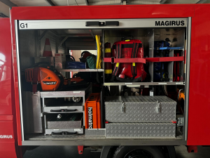 • Ausziehbare Ablage für tragbare Feuerlöschpumpe (TS)