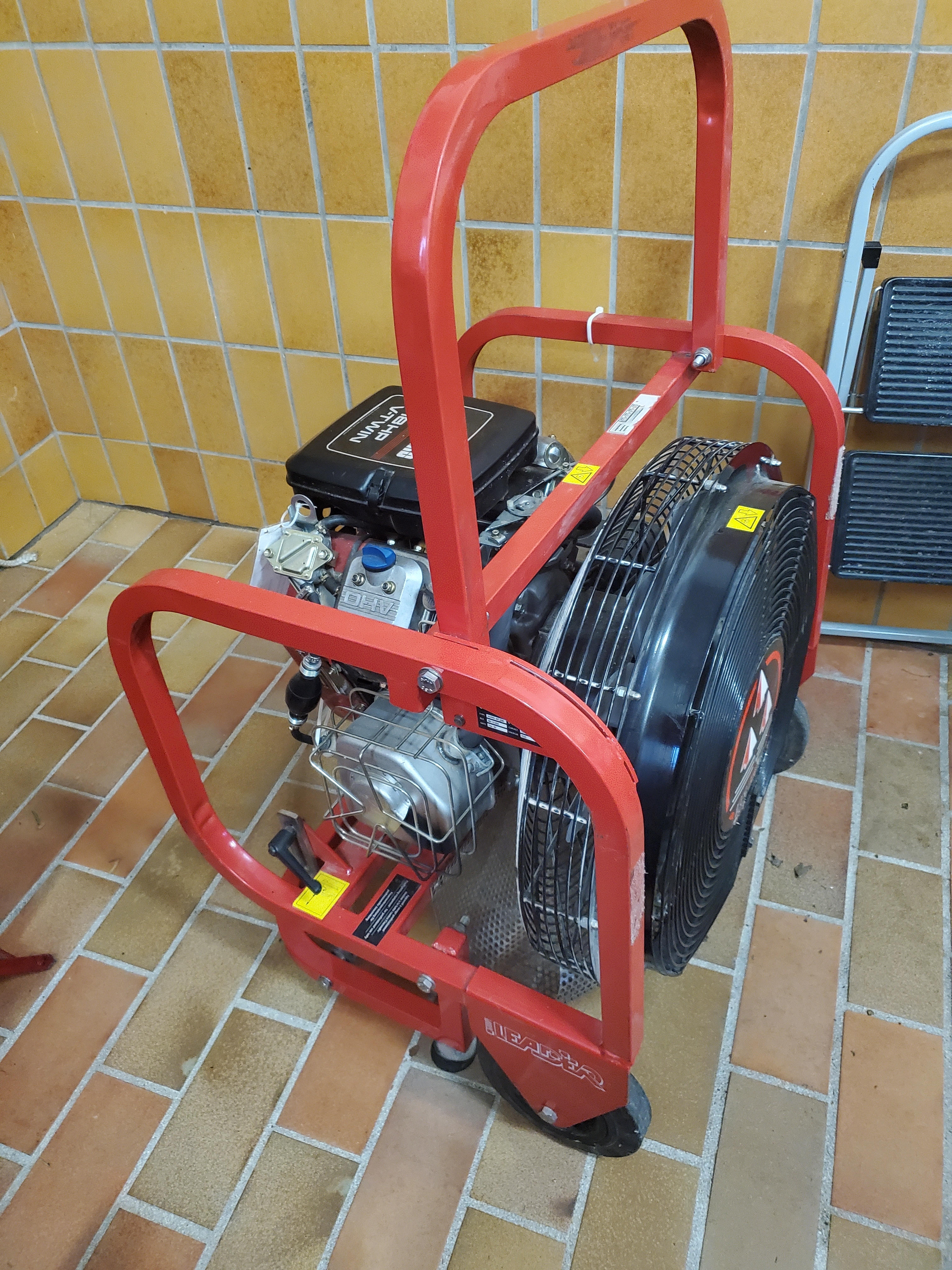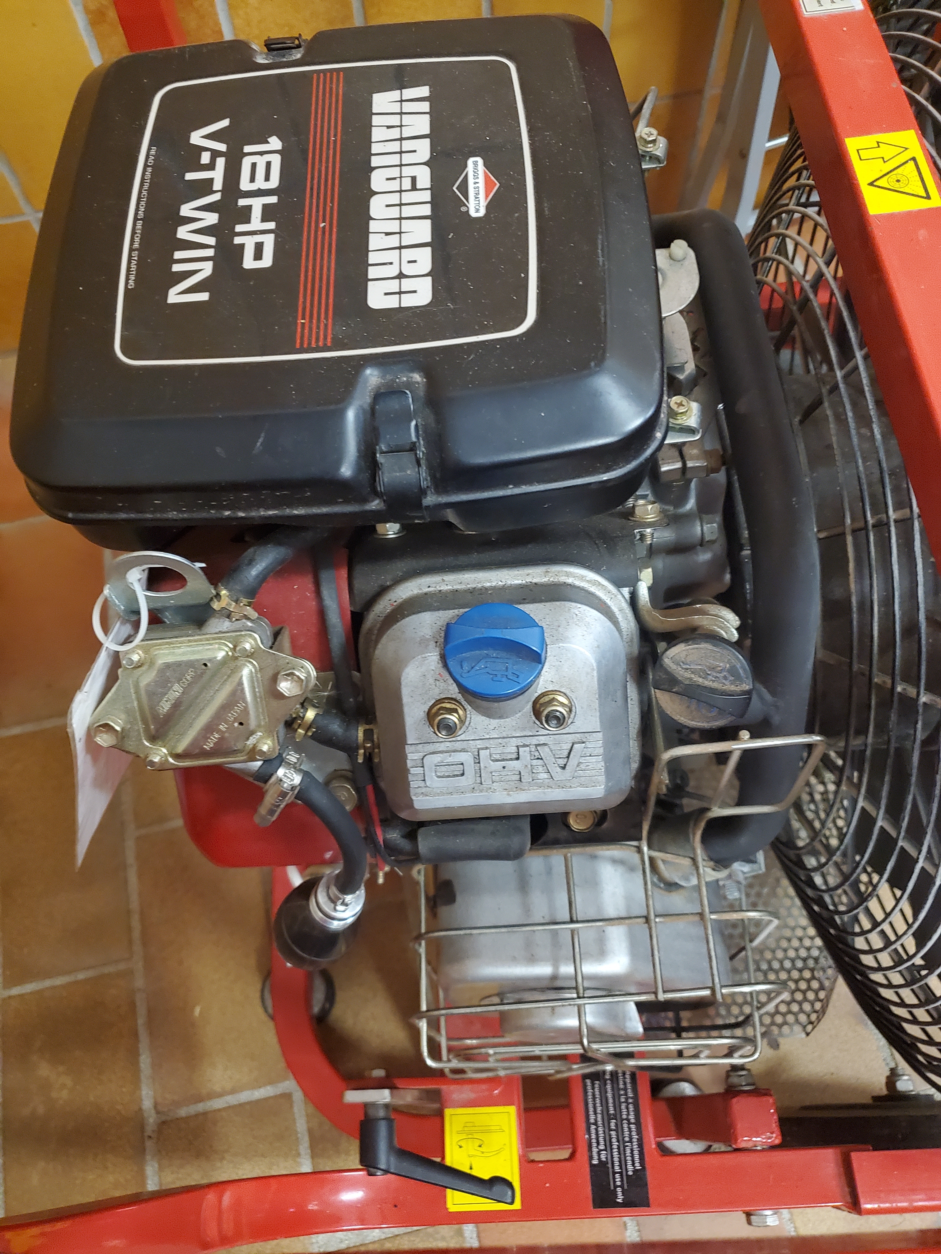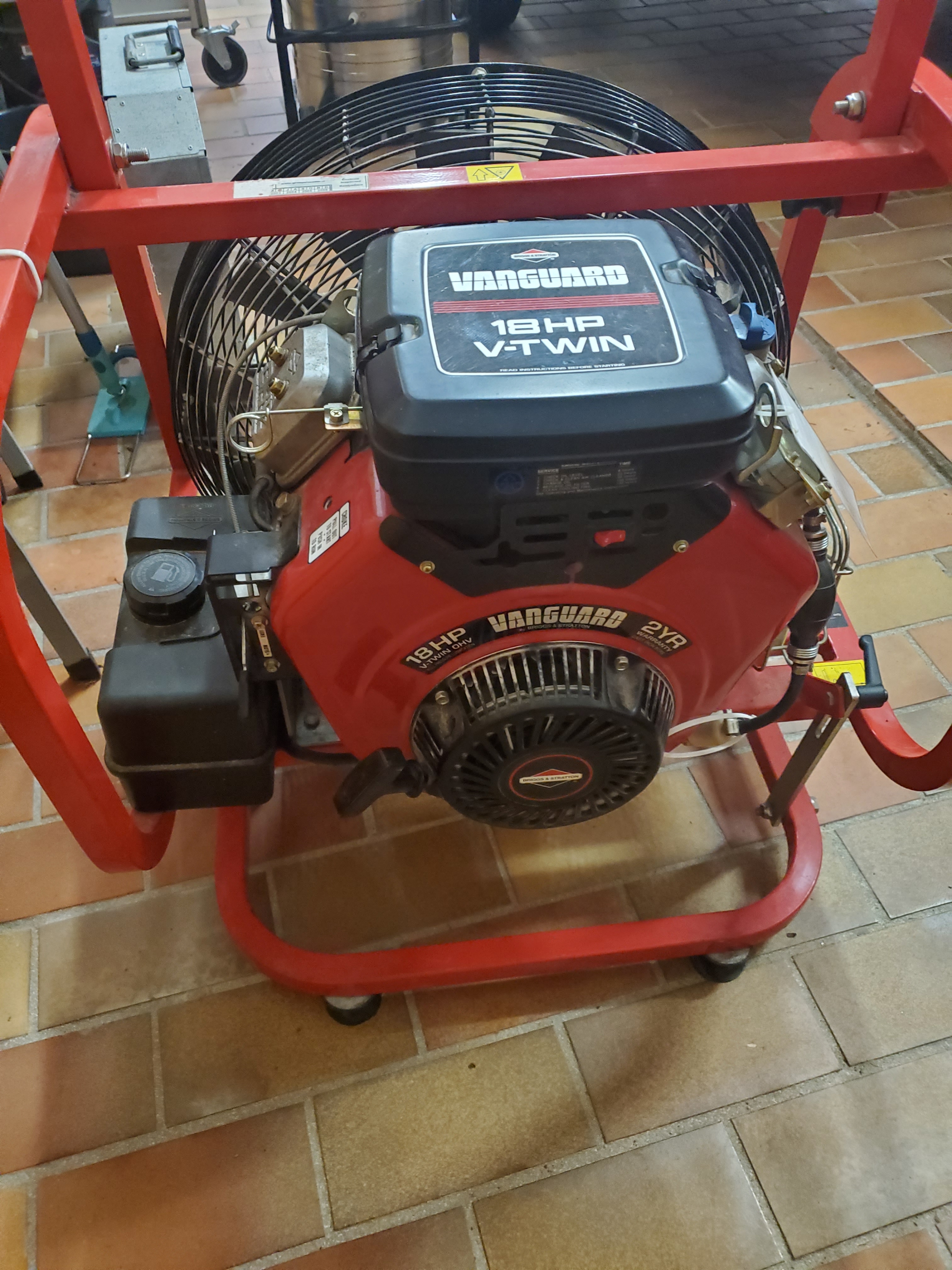 Biete einen Überdrucklüfter Leader Hurricane MT296 zum Verkauf. Baujahr: Feb.2000 Abmessungen: (HxBxT) 715mmx730mmx570mm Gewicht leer:68,5Kg Motor: Briggs & Stratton Typ Vanguard-4 Takt-18Ps bei 3600U/min-Benzin Max Luftgeschwindigkeit: 145 Km/h Nennleistung: 32000 m3/h Zusätzliche Luftmenge: 64000 m3/h Gesamtleistung: 96000 m3/h Ventilatorschutzgehäuse aus Stahlblech Turbine aus Kunstharz (Durchmesser 55cm) Nabe aus Aluminium Schutzrahmen epoxybeschichtet, Farbton RAL3000 Laufzeit: 90 Minuten bei voller Drehzahl Automatisches Abschalten bei Ölmangel oder unbeabsichtigtem Kippen des Gerätes Geräuschpegel ca.107db in 1m Entfernung Umklappbarer Handgriff,zwei Räder (Durchmesser 20cm) Präzise Einstellung des Neigungswinkel (0-20 Grad) Lüfter ist voll funktionsfähig,kleine Gebrauchsspuren Lüfter ist seit 2015 bei unserer Feuerwehr in Besitz. Er wurde sehr wenig benutzt. Preis: 550.00 Euro VHB 31.12.2025 Anzeige-Nr.: 99880 | ||