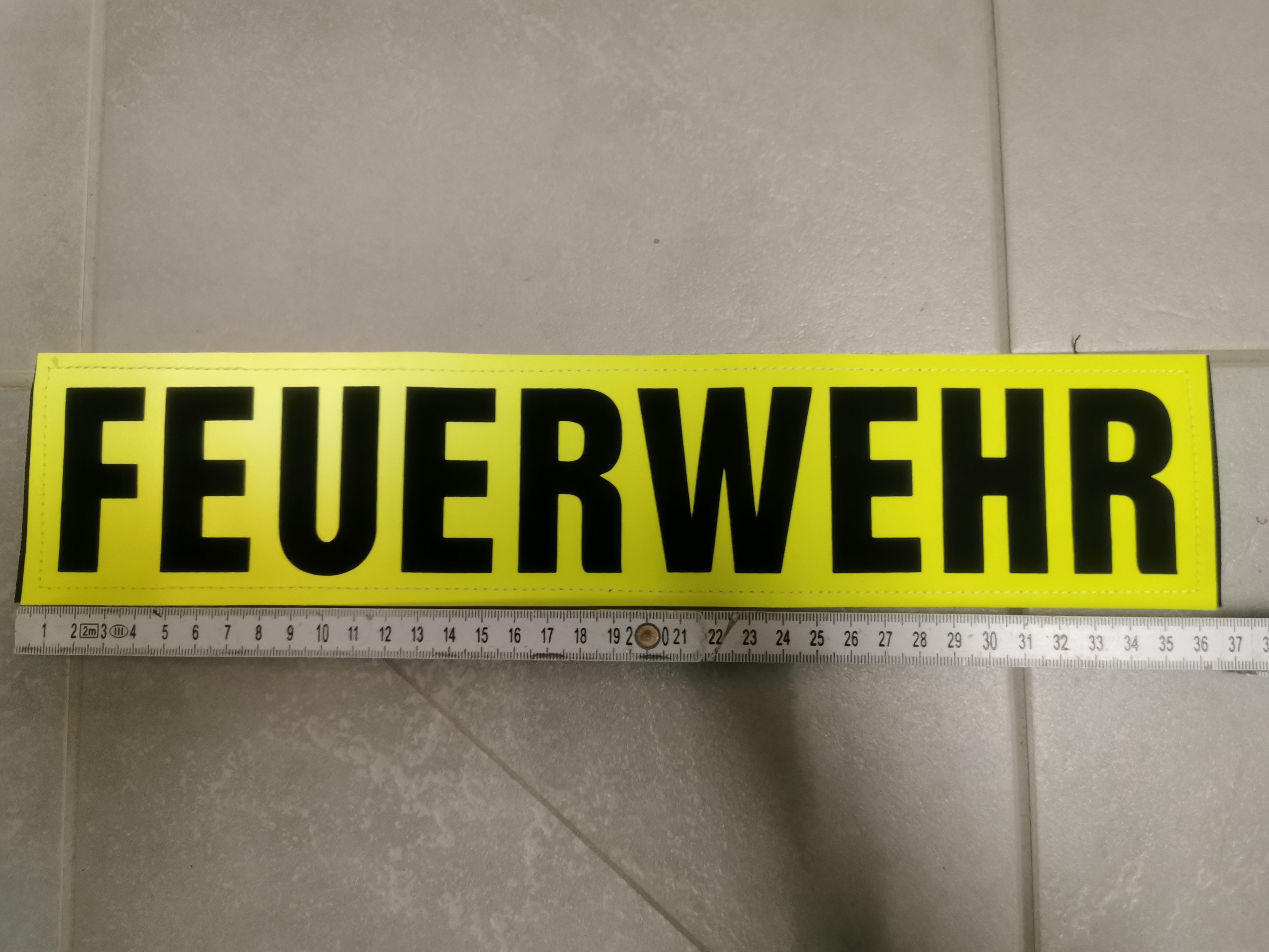 Wir verkaufen 85 Klett-Rückenschilder "FEUERWEHR" für Feuerwehrjacken etc.
