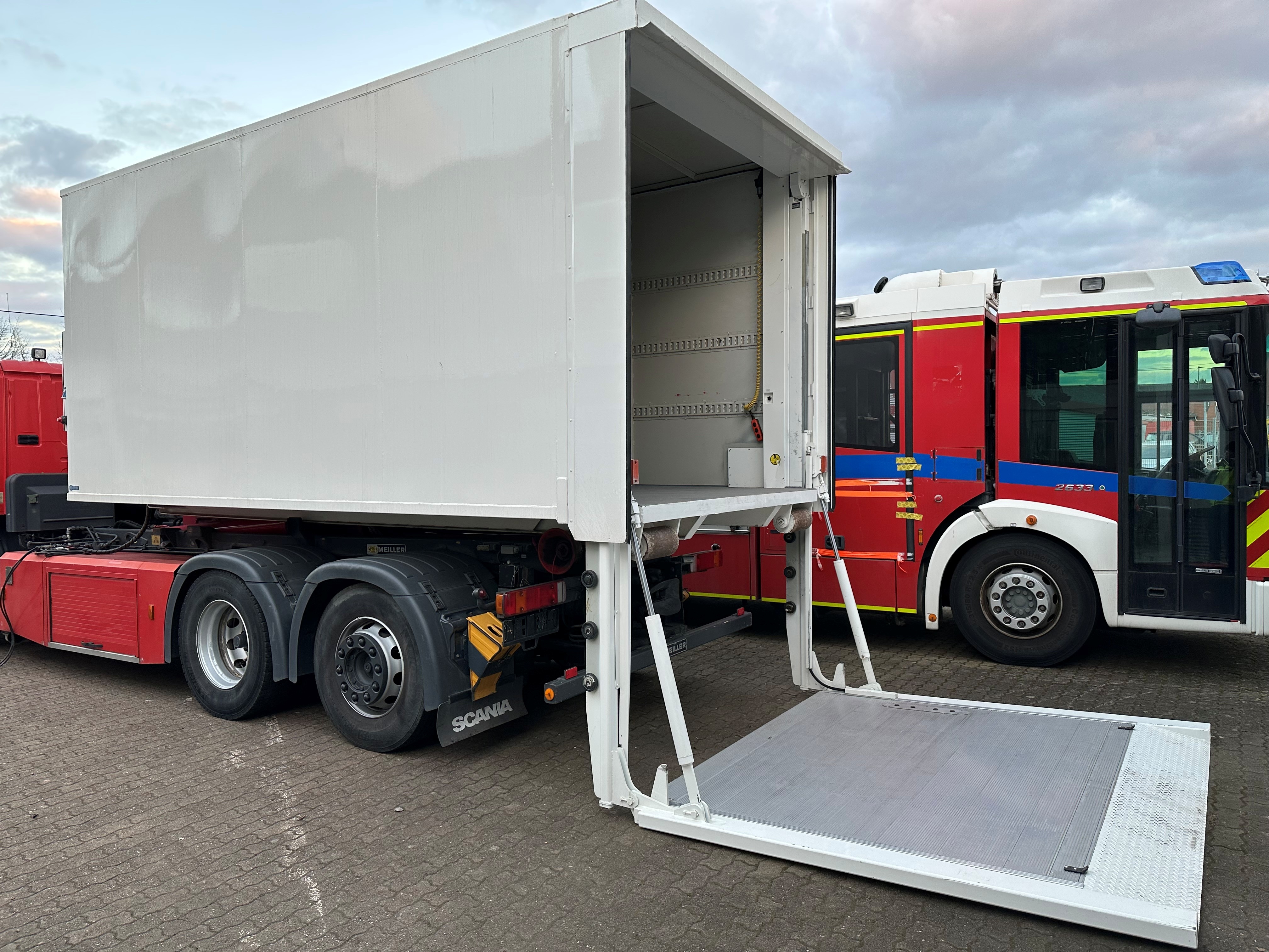 AB-Logistik mit DHOLLANDIA -Vertikal Lift und Sirch-Abrollcontainer Baujahr 2014 ! Der Container wurde zum Transport von Schulmöbel genutzt und war laut Vorbesitzer nur einmal im Einsatz. Daher befindet er sich im absolut neuwertigen Zustand.! Der Vertikal Lift kann über drei verschiedene Steuerelemente bedient werden. Die Spannungsversorgung kann über die 24 Volt Steckdose des Trägerfahrzeuges sichergestellt werden. Eine autarke Stromversorgung kann über die im Abrollcontainer befindlichen 24 Volt Batterien sichergestellt werden. Auch ist eine Einspeisung mit 230 Volt vorgesehen. Eine LED-Innenbeleuchtung ist ebenfalls verbaut. Ladung Sicherungsschienen sind im gesamten Container vorhanden. Der DHOLLANDIA Vertikal Lift könnte ggfs. auch als Maschinisten Stand zum Betreiben einer Tragkraftspritze im aufgesattelten Zustand verwendet werden. Auch ist eine Verlegung von B-Schläuchen während der Fahrt möglich, da der Vertikal Lift in den Unterflurbetrieb gebracht werden kann (siehe Bild). Ohne Beladung, Zwischenverkauf, irrtümliche Angaben, alle Rechte vorbehalten. Preis auf schriftliche Anfrage unter vollständiger Angabe der Organisation. 12.01.2026 Anzeige-Nr.: 99992 | |||