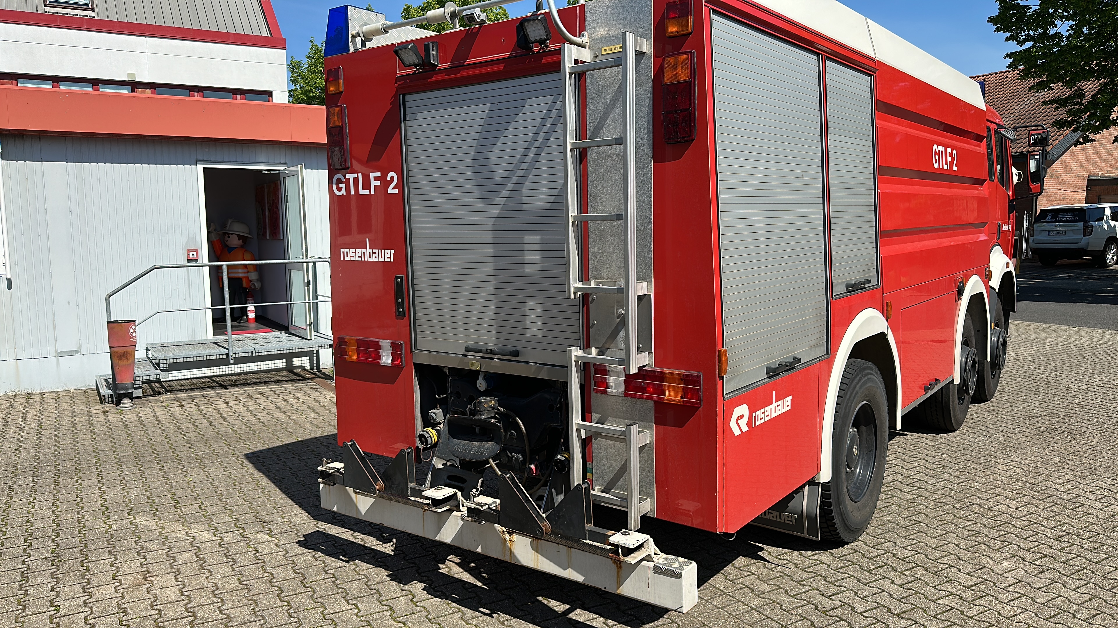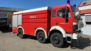 GTLF10000 Mercedes 2638 Antrieb: 6x2/4, EPS-Schaltung Diesel-Motor, 280 KW Erstzulassung: 6.11.1998 Kilometer: 27.000 Wassertank: 5.000 l Schaumtank: 5.000 l Pumpe: Rosenbauer N40 Schaumzumischer Deltamatic Dachmonitor RM60E (1.600l oder 4000l bei 10bar, Wurfweite 80m ) Aufbauhersteller: Rosenbauer 1 + 2 Sitze Ausstattung: Suchscheinwerfer Sondersignalanlage Schnellangriffshaspel 40m NW36 formstabiler Druckschlauch 2 Anhängehaspel für Schläuche