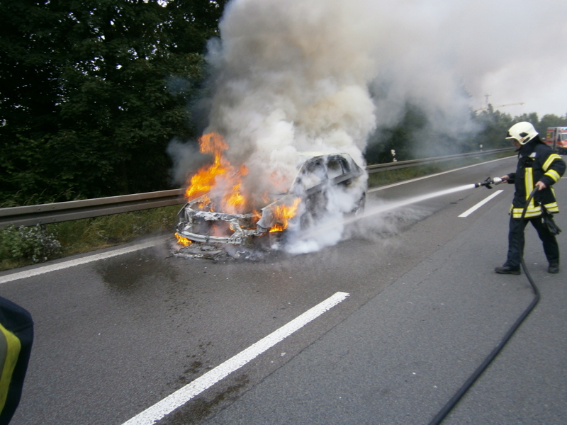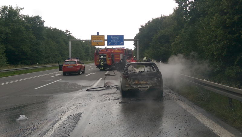 Am Mittwoch, den 24.06.2015 um 16:05 Uhr, wurde die Feuerwehr Gevelsberg zu einem PKW Brand auf die BAB 1 alarmiert. In der Tangente zur BAB 46 hatte ein PKW Feuer gefangen und brannte beim Eintreffen der Feuerwehr in voller Ausdehnung. Ein Trupp unter Atemschutz löschte das Fahrzeug. Anschließend wurde ausgelaufenes Motoröl und Kraftstoff mit Bindemittel abgebunden. Hierfür mußte die Auf- und Abfahrt zur A 46 in beiden Richtungen komplett gesperrt werden. Im Einsatz waren die hauptamtliche Wache und der Löschzug drei mit zusammen vier Fahrzeugen und 14 Einsatzkräften. Um 17:15 Uhr konnte der Einsatz beendet werden.