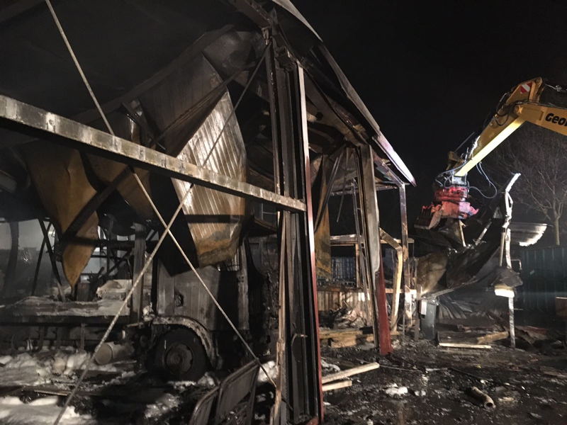 Insgesamt waren 106 Kräfte aus 9 Feuerwehren, sowie 9 Kräfte vom DRK an der Einsatzstelle. Die Brandursache ist unklar. Die Polizei hat die Ermittlungen aufgenommen. Die Schadenssumme wird nach Rücksprache mit der Polizei auf 500000.-EUR geschätzt.