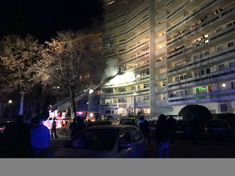 22:35 Uhr - Feuer Wohnung mit Menschenleben in Gefahr in Hochhaus - Mülheimer Straße im Stadtteil Gronau