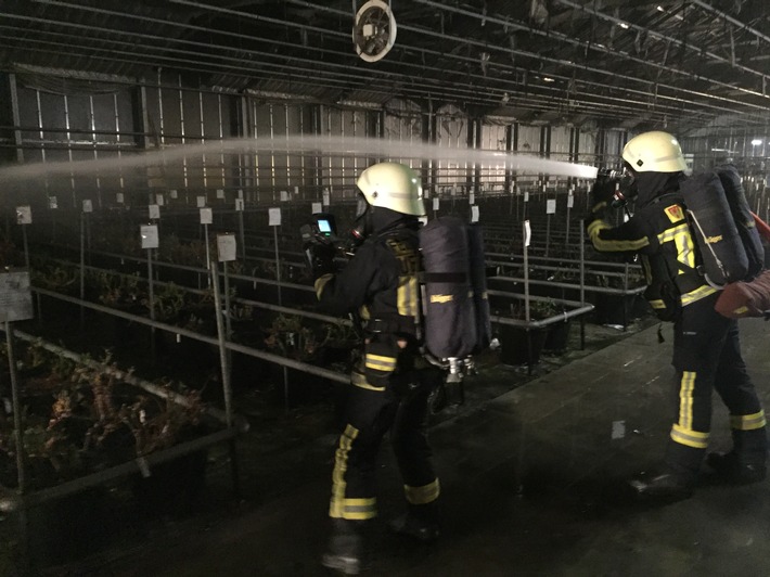 In Uetersen kam es in der Neujahrsnacht zu einem größeren Brand. In einem Gewächshaus eines Rosenzuchtbetriebes war die so genannte Schattierung in Brand geraten. Als die Feuerwehr um 2.11 Uhr zu dem etwa 50 Meter langen und 30 Meter breiten Gebäude gerufen wurde, brannte der Kunststoffvorhang unter dem Dach, mit dem die Pflanzen vor dem Sonnenlicht geschützt werden, bereits großflächig.