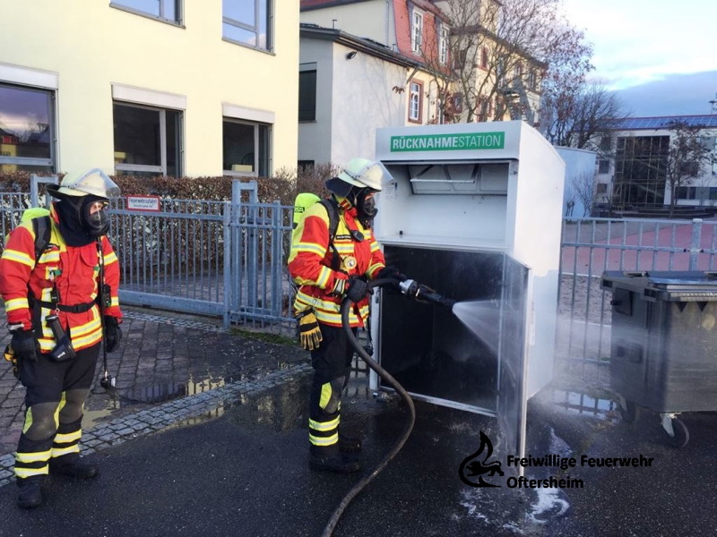 Der Jahreswechsel 2017/2018 hat der FFOftersheim eine sehr unruhige Nacht beschert. Bei insgesamt 5 Einsätzen wurde die Hilfe der Feuerwehr benötigt. Die letzte Meldung erreichte die Kameraden und Kameradinnen am Neujahrsmorgen. Aus einem Altkleidercontainer sollte es qualmen. Vor Ort wurde dies bestätigt. Der Container wurde mit Werkzeug geöffnet und der brennende Inhalt mit Wasser abgelöscht. Anschließend wurde eine Kontrolle mit der Wärmebildkamera durchgeführt.
