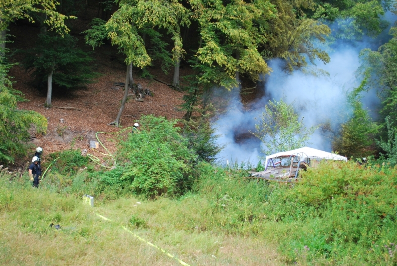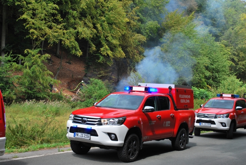 An der Grüner Talstraße brannten mehr als 100 qm Waldboden und Büsche. Das Feuer drohte auf den angrenzenden Laubwald überzugreifen. Mit zwei C-Rohren konnte dies erfolgreich und zügig verhindert werden. Löschwasser konnte für die Einsatzmaßnahmen aus einem nahen Unterflurhydranten entnommen werden. Die Feuerwehr war mit über 30 Einsatzkräften von Berufs- und Freiwilliger Feuerwehr im Einsatz. Eine Brandwache verblieb bis zum späten Nachmittag an der Einsatzstelle. Auch hier war die Straße für die Dauer der Löscharbeiten gesperrt worden. Die Brandursache ist unklar.