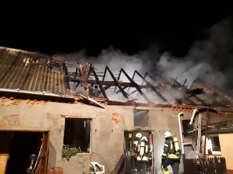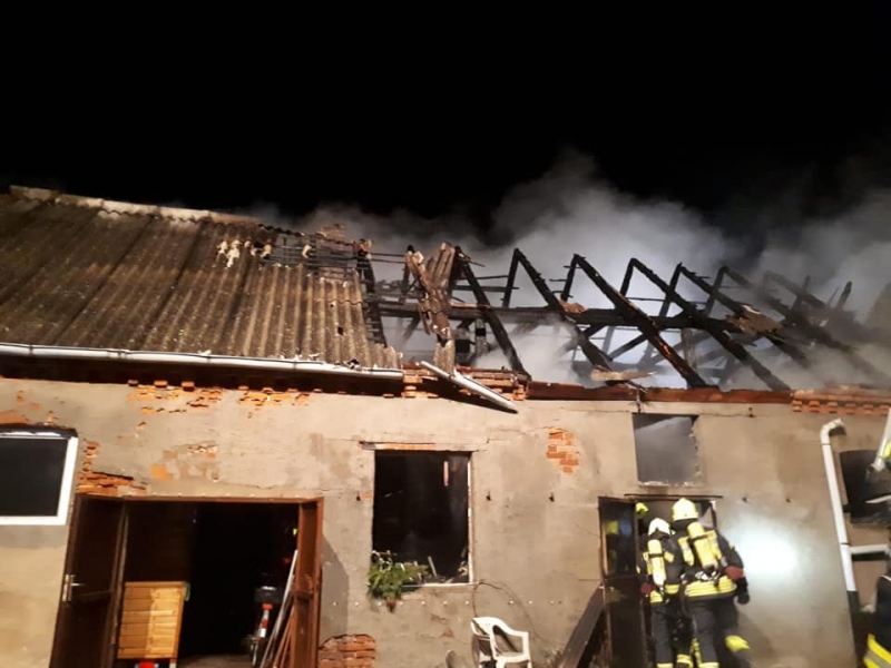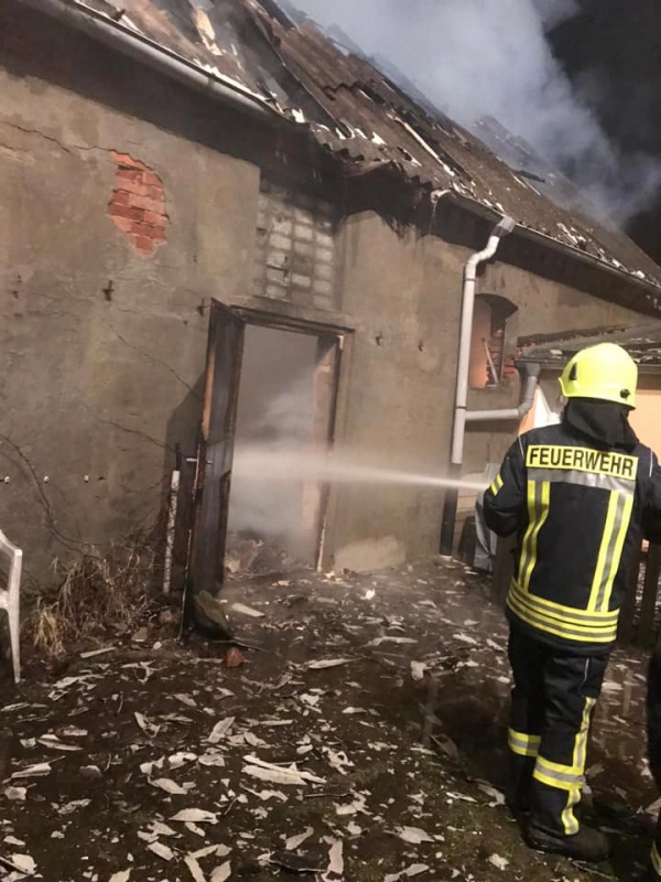 Wir waren mit LF und TLF im Löscheinsatz. Personen kamen nicht zu schaden. Der Dachstuhl des Gebäudes war jedoch nicht mehr zu retten.