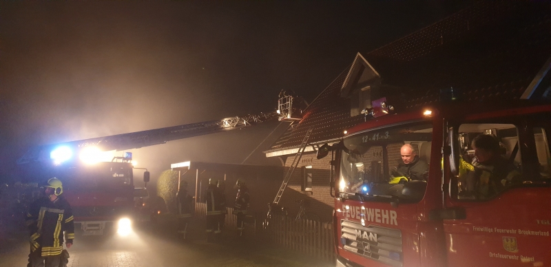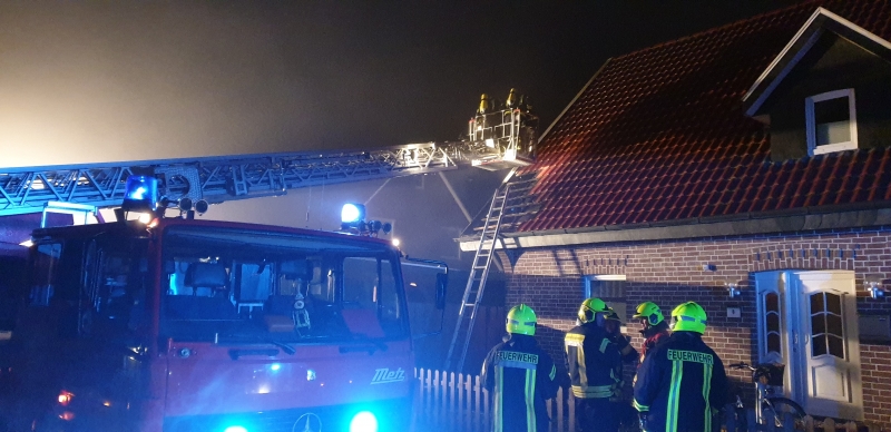 In der Silvesternacht mussten die Kräfte der Freiwilligen Feuerwehr Brookmerland zu einem Einsatz ausrücken. In Rechtsupweg, in der Kiefernstraße, brannten gegen 3:15 Uhr Mülltonnen unter einem Carport. Diese versuchten Anwohner mit einem Gartenschlauch zu löschen, das Feuer konnte durch die Versuche zwar etwas eingedämmt, jedoch nicht komplett gelöscht werden, sodass sie einen Notruf absetzten. Die Flammen griffen im weiteren Verlauf auf das Dach des angrenzenden Wohnhauses über. Jedoch gelang es durch das schnelle Eingreifen der Anwohner und der Feuerwehr, das Wohnhaus mit einem geringen Schaden zu halten. Das Carport wurde schwer beschädigt. Zur Kontrolle des Daches wurde die Drehleiter aus Norden nachalarmiert. So wurde ein Teil der Dachhaut entfernt, um eventuelle Glutnestern abzulöschen.