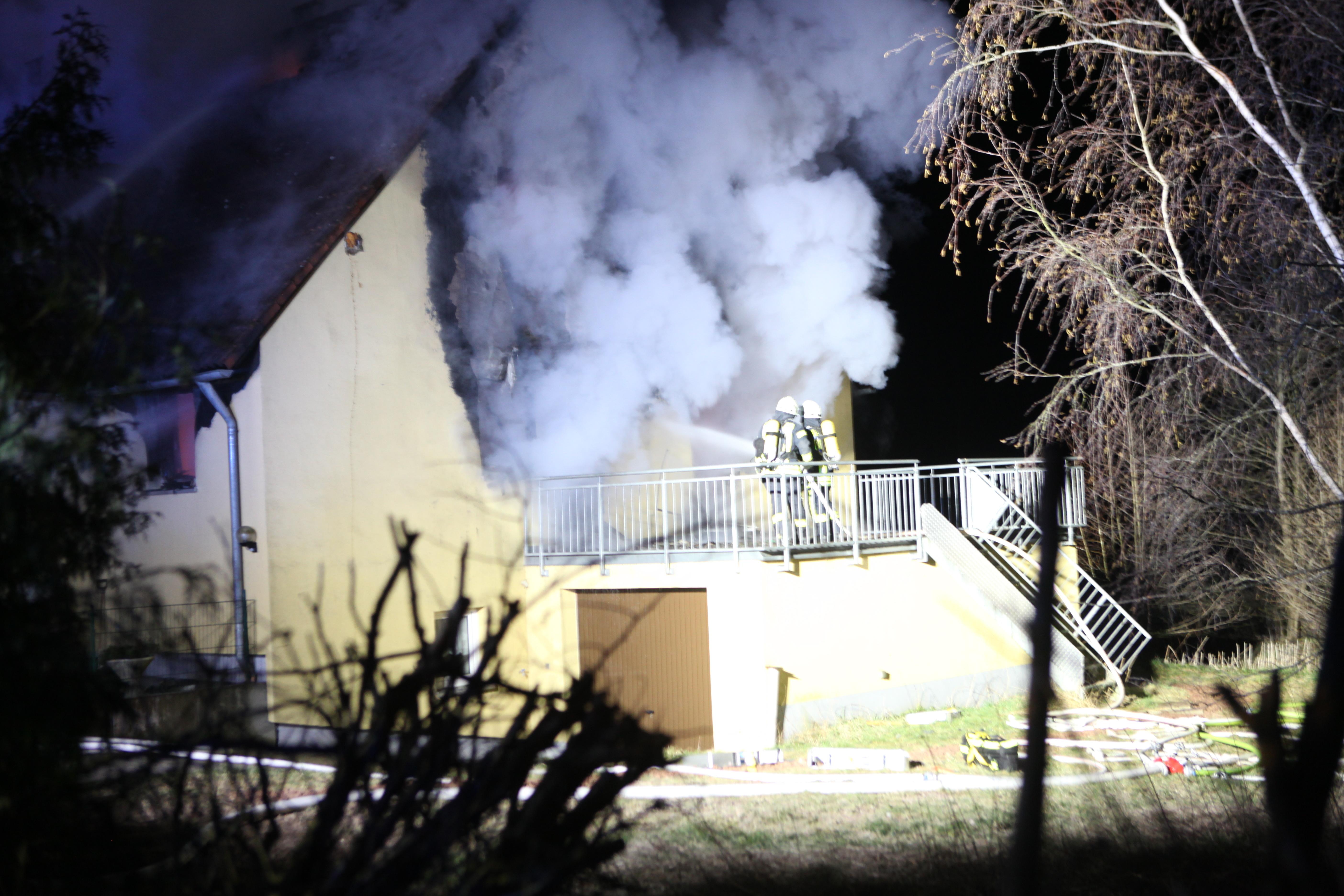 Kurz nach 01:00 Uhr war wohl das Feuer in dem Anwesen Froschmühle ausgebrochen. Bei Eintreffen der Einsatzkräfte stand das Erdgeschoss der Doppelhaushälfte bereits im Vollbrand. Die 75-jährige Bewohnerin konnte noch selbst den Notruf auslösen, wurde dann aber von der Feuerwehr bewusstlos aus dem Haus geborgen. Trotz sofortiger Reanimationsmaßnahmen durch einen Notarzt verstarb die Dame noch vor Ort an einer massiven Rauchgasintoxikation.