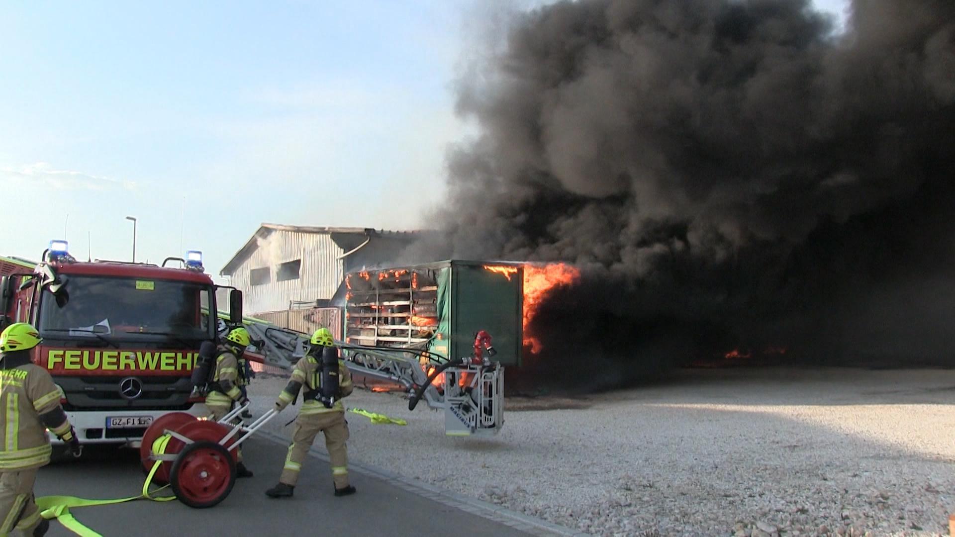 Am 24.04.2020, um 18:19 Uhr wurde der Polizei über Notruf der Brand einer landwirtschaftlichen Lagerhalle direkt gegenüber der Feuerwehr in Waldstetten im Landkreis Günzburg gemeldet.