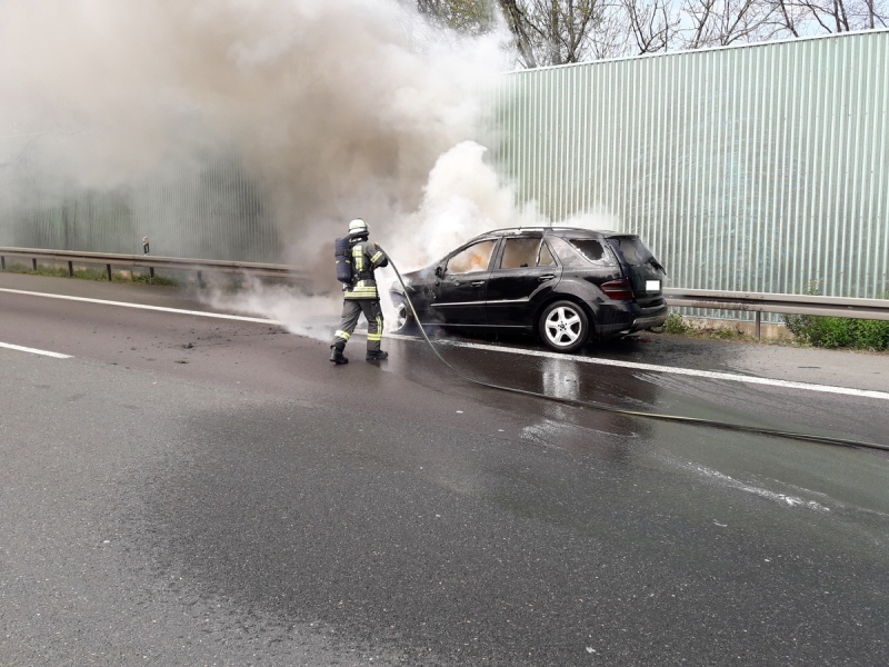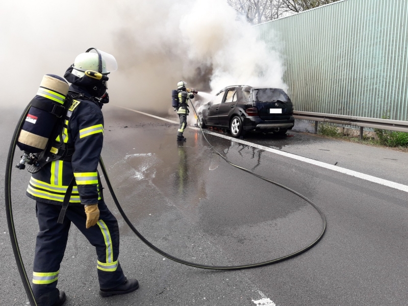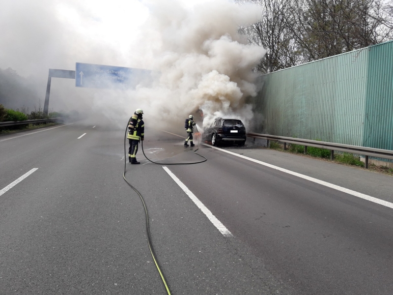 Am Sonntag, den 19.04.2020 um 12:33 Uhr wurde die Hauptamtliche Wache und das TLF4000 der Feuerwehr Gevelsberg zum Autobahnkreuz Nord alarmiert. Hier stand ein PKW in Vollbrand. Der Fahrer des Wagens reagierte sehr besonnen. Nachdem er den Brand bemerkte steuerte er den Wagen auf den Seitenstreifen und verließ zusammen mit seinem Beifahrer das Fahrzeug. Auf dem Seitenstreifen konnte er noch seinen Anhänger abkuppeln und den PKW gegen Wegrollen sichern. Danach brachten sich beide Personen hinter der Leitplanke in Sicherheit. Die Einsatzkräfte der Feuerwehr konnten Gefahrlos arbeiten, da die Autobahn 1 während der Einsatzdauer durch die Polizei voll gesperrt worden war. Ein Trupp unter schwerem Atemschutz löschte das Feuer. Weiter musste auslaufendes Öl durch die Feuerwehr ab gestreut werden. Während des Einsatzes auf der BAB 1 stellte der Löschzug eins den Grundschutz im Stadtgebiet mit 19 Einsatzkräften sicher. Den Einsatz auf der Autobahn konnten die 11 Einsatzkräfte um 14:07 Uhr beenden.