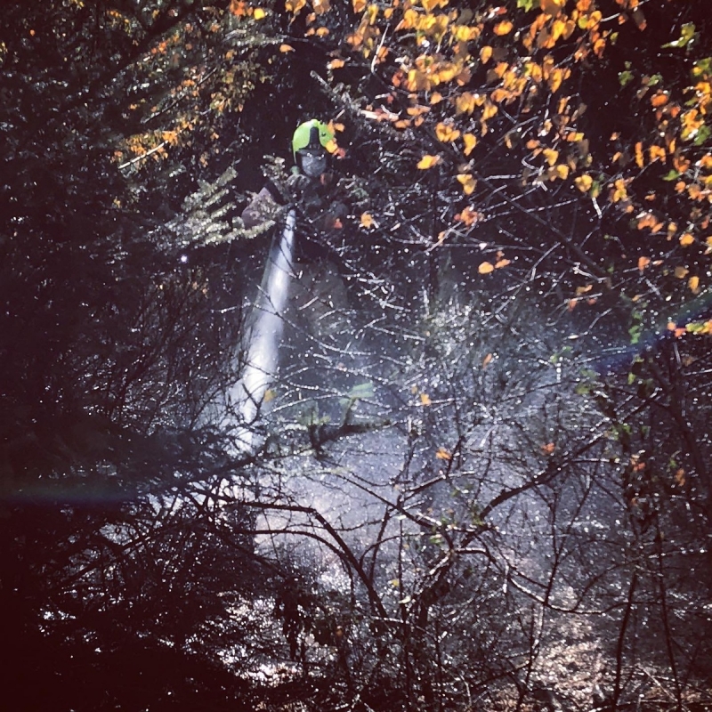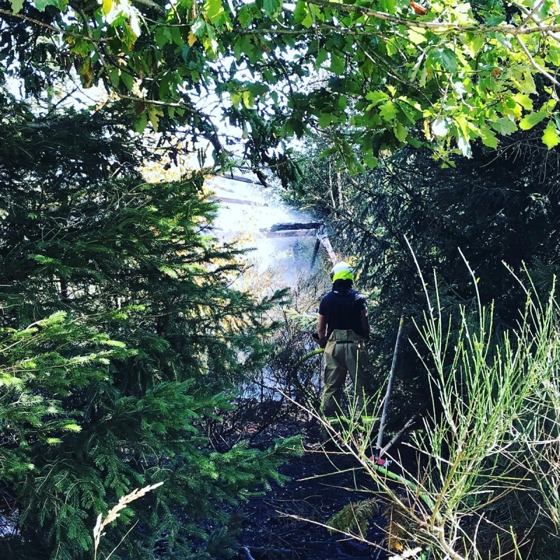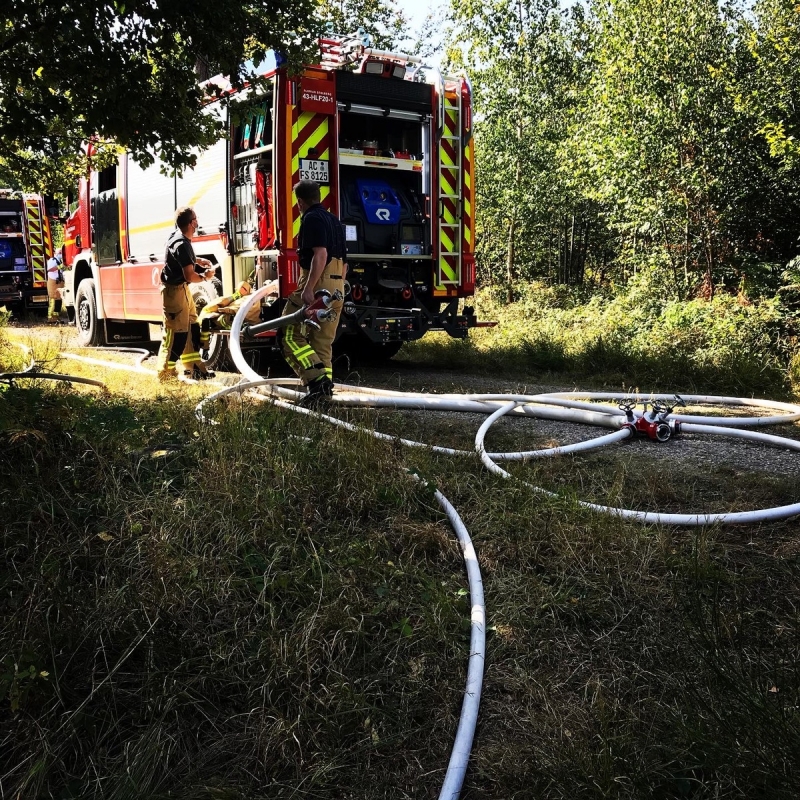 Dort brannten ein Hochsitz und rund 100 qm Waldfläche. Mit zwei C-Rohren wurden die Flammen schnell gelöscht. Anschließend wurde der betroffene Bereich aufgrund der aktuell großen Waldbrandgefahr ausgiebig bewässert, um einen erneuten Brandausbruch vorzubeugen.