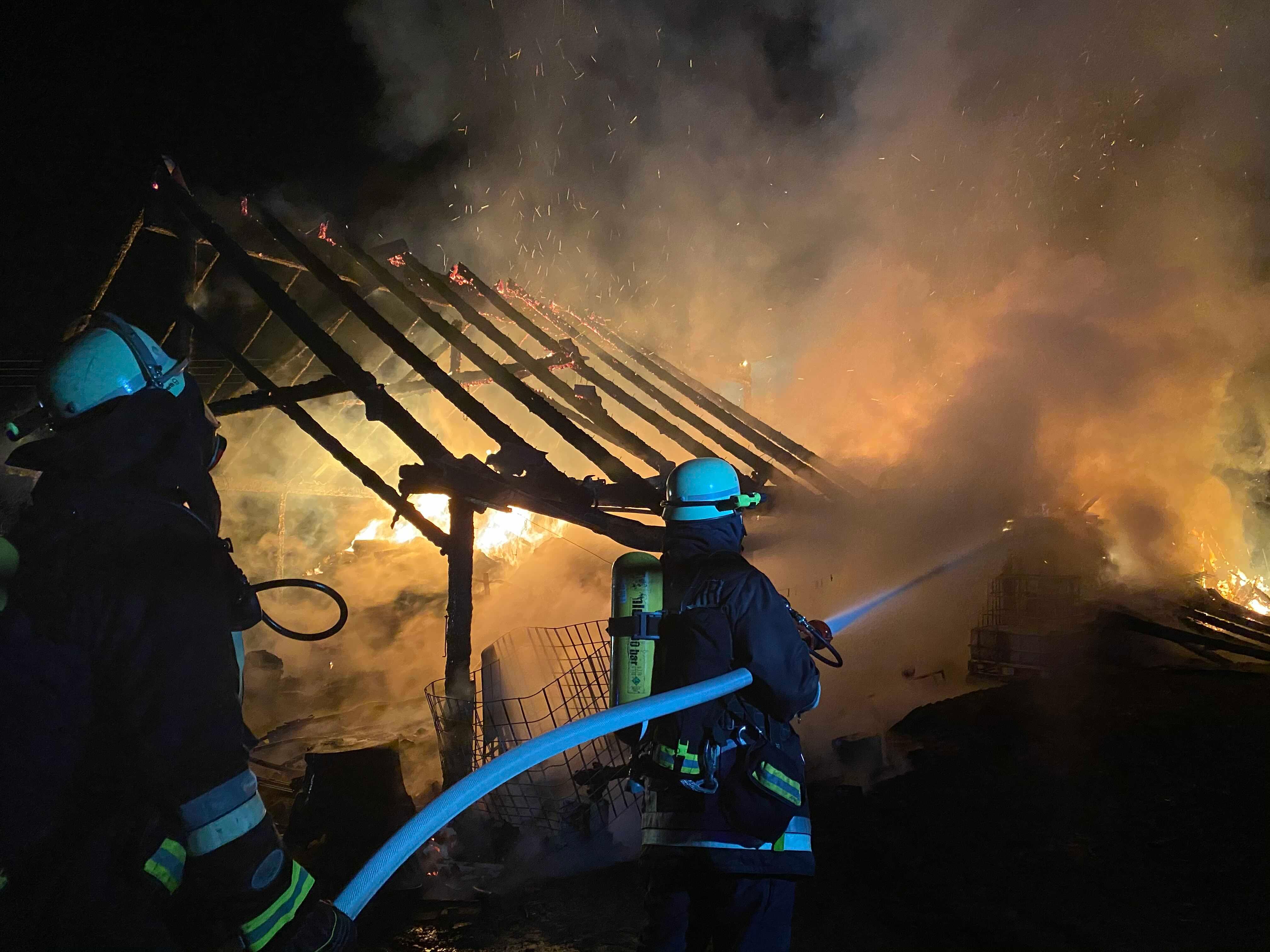 Heute Abend (23.11.2020) kam es zu einem schadensträchtigen Brand im Schwabacher Gemeindeteil Oberbaimbach. Nachdem aus zunächst unbekannter Ursache eine Scheune in Brand geraten war, griffen die Flammen in der Folge auch auf das angrenzende Wohnhaus über.