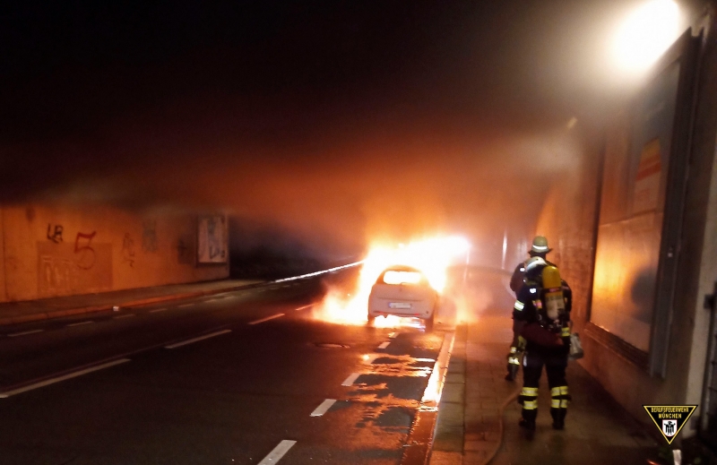 Sonntagnacht ist es in einer Unterführung zu einem PKW Brand gekommen. An dem Fahrzeug entstand Totalschaden. Der Lenker war mit seinem Kraftfahrzeug auf der Hultschiner Straße Richtung Friedrich-Eckart-Straße unterwegs, als er in der Autobahnunterführung Rauch und Brandgeruch aus der Fahrzeuglüftung bemerkte. Er stoppte das Fahrzeug und informierte die Feuerwehr. Die alarmierten Kräfte fanden das Fahrzeug in Vollbrand vor. Mit zwei C-Rohren löschten die Einsatzkräfte von Freiwilliger Feuerwehr und Berufsfeuerwehr den brennenden PKW.