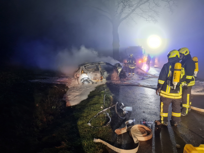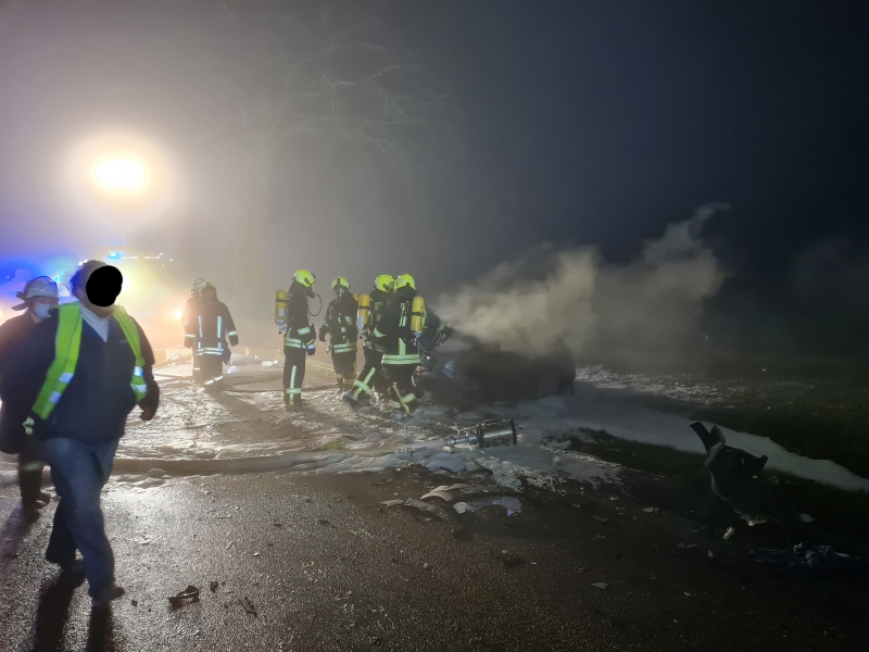 Um 17.40 Uhr wurden wir, auf die S207, zu einem schweren VKU gerufen. Ein PKW und ein LKW sind aus noch ungeklärter Ursache zusammengestoßen. Der Aufprall war so heftig, dass der PKW sofort Feuer fing und in Folge komplett ausbrannte. Ersthelfer konnten den schwerstverletzten PKW Fahrer noch rechtzeitig aus seinem Frack ziehen und versorgen. Wir sicherten die Unfallstelle großräumig ab und stellten 1 PA - Trupp in Bereitstellung. Weiterhin suchten wir nach möglichen Insassen im Umfeld des PKW, da zum Zeitpunkt nicht ausgeschlossen werden konnte, dass es weitere Betroffene gibt. Zum Glück ohne Ergebnis. Die verletzte Person wurde an den RD übergeben. Die auslaufenden Betriebsstoffe des LKW wurden abgestumpft und anschließend von einer Spezialfirma aufgenommen. Gegen 21 Uhr war der Einsatz beendet.