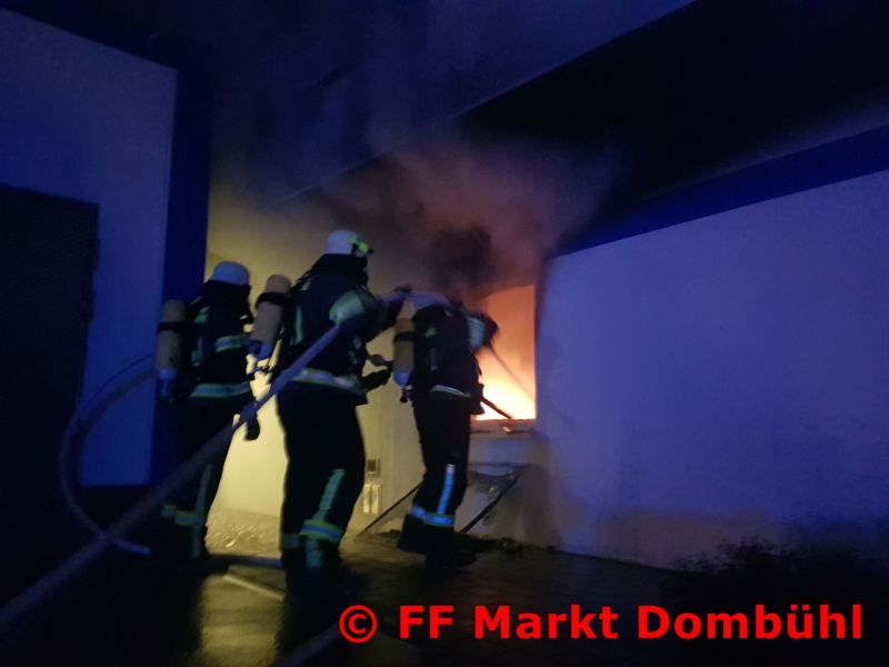 Nach ca. 3 Stunden waren die Löschmaßnahmen und das Entlüften des Gebäudes abgeschlossen. Die Feuerwehr Dombühl übernahm daraufhin die Brandwache bis in die frühen Morgenstunden, bis das Gebäude dem Betreiber übergeben wurde.