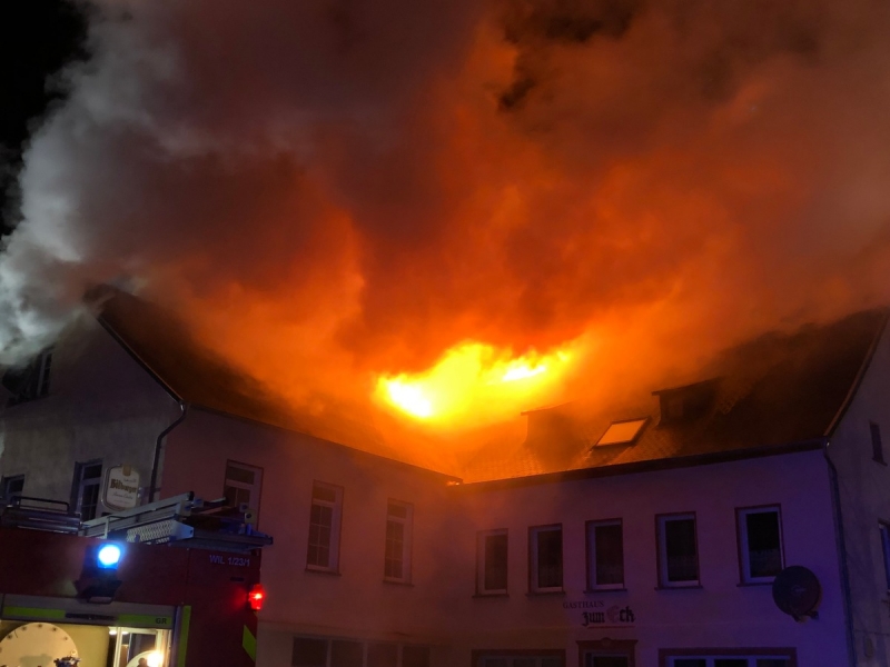 Am 01.01.2022 wurde gegen 02:00 Uhr der Leitstelle der Feuerwehr ein Küchenbrand in Großlittgen, Himmeroder Straße gemeldet. Im Rahmen eines Silvesteressens wurde durch die Bewohner vergessen, den Backofen auszuschalten und zum Jahreswechsel wurde das Wohngebäude verlassen. Bei Rückkehr stellten die Bewohner dann eine Rauchentwicklung in der Küche fest und konnten das dort entstandene Feuer nicht selbstständig löschen. Nach Verlassen des Hauses wurde dann die Feuerwehr verständigt. Das Feuer dehnte sich im weiteren Verlauf auf das Gebäude aus, wobei der Dachstuhl später einstürzte. Derzeit dauern die Löscharbeiten noch an. Eine Person erlitt eine leichte Rauchgasintoxikation, welche durch die Rettungskräfte behandelt wurde. Über die Schadenshöhe kann derzeit noch keine Angaben gemacht werden. Im Einsatz befanden sich die Feuerwehr mit 48 Einsatzkräften, das DRK und die Polizei Wittlich.