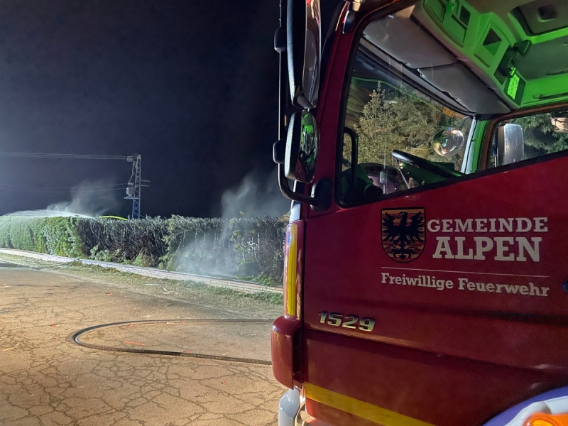 Durch Silvesterfeuerwerk geriet eine Hecke auf rund 30 Metern Länge in Brand. Die Einsatzkräfte löschten diesen unter umluftunabhängigen Atemschutz mittels zwei S-Rohren ab und kontrollierten den angrenzenden Bereich anschließend ohne weitere Auffälligkeiten.