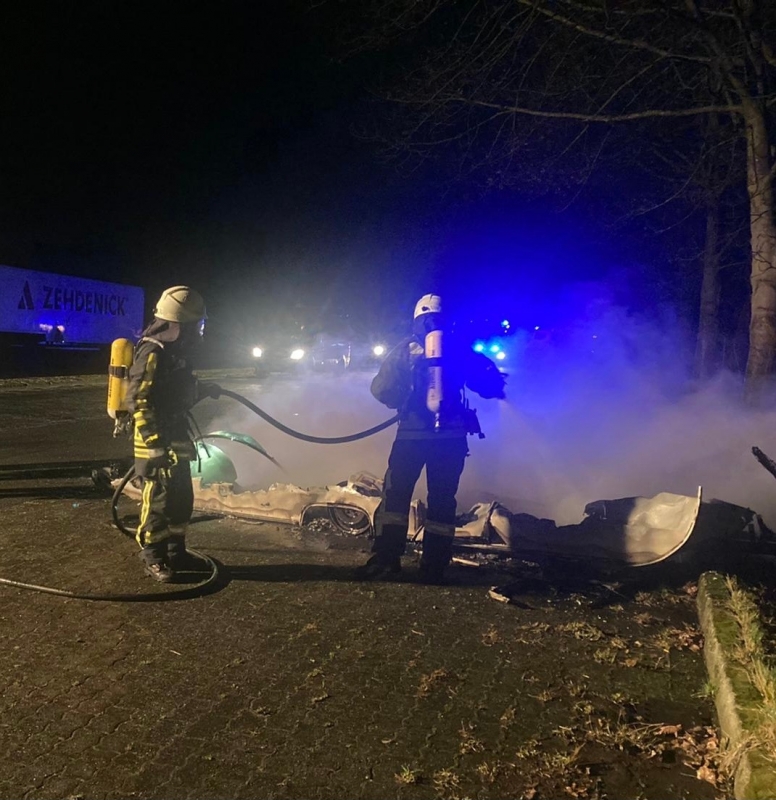 Ein brennender Wohnwagen sorgte für den ersten Einsatz am heutigen Tag bei der Hattinger Feuerwehr.