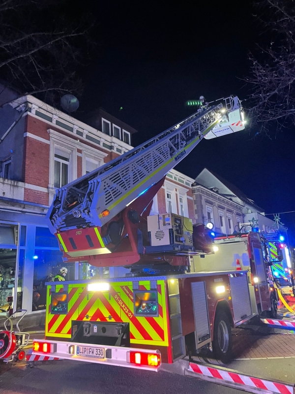Um kurz vor 22 Uhr ging die nächste Alarmmeldung bei der Feuerschutz- und Rettungsleitstelle Kreis Lippe ein. Gemeldet wurde ein Brand in der Küche eines Imbisses in der Friedrichstraße. Die Leitstelle alarmierte daraufhin um 21:50 Uhr die Feuerwehr Lage und den Rettungsdienst mit dem Stichwort "Feuer MIG / Zimmerbrand, brennt Küche". Bei Eintreffen der Feuerwehr hatten die Betreiber des Imbisses zuvor schon eigene Löschversuche unternommen, mussten dann aber den Imbiss aufgrund der Rauchentwicklung verlassen. Im Imbiss brannte es im Bereich der Fritteuse, so dass ein Angriffstrupp unter Atemschutz mit C-Rohr ins Gebäude vorging. Der Trupp konnte das Feuer schnell ablöschen und eine weitere Ausbreitung verhindern. Parallel zur Brandbekämpfung kontrollierte ein weiterer Trupp das Wohngebäudegebäude oberhalb des Imbisses auf Personen. Angetroffen wurden keine Personen mehr, alle hatten im Vorfeld das Gebäude verlassen. Der Imbiss wurde anschließend belüftet. Verletzt wurde bei dem Einsatz niemand, die Schadenhöhe ist nicht bekannt. Im Einsatz waren die Einheiten Lage und Heiden, sowie die Führungsunterstützungstruppe der Einheit Kachtenhausen.