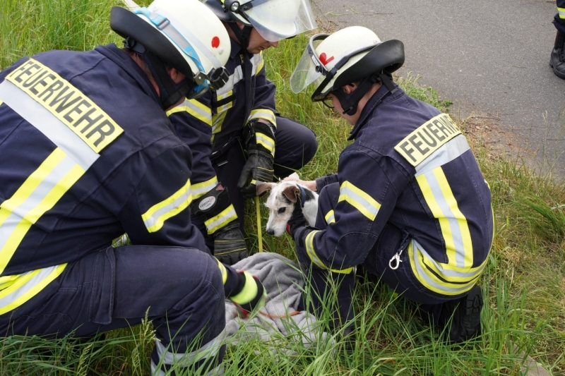 Der Hund im Kofferraum des Caddy hat den Unfall weitestgehend unbeschadet überstanden – ein Tierarzt nahm den Terrier zur weiteren Untersuchung mit in die Praxis.