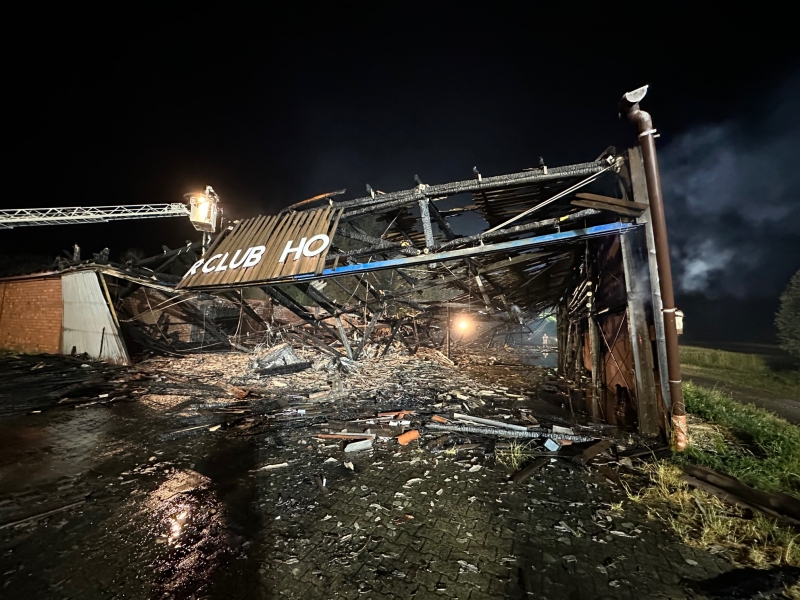 Bis 09:40 Uhr war die Feuerwehr Hockenheim noch mit einem Löschfahrzeug vor Ort um Nachlöscharbeiten durchzuführen. Im Feuerwehrhaus laufen außerdem Aufräumarbeiten.