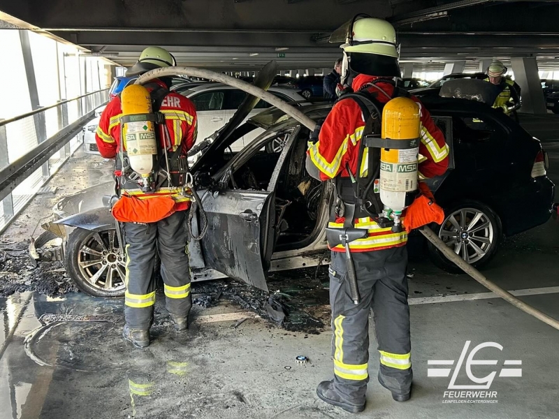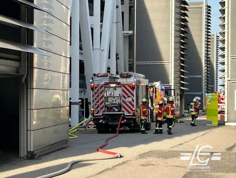 Heute Nachmittag wurden wir mit einem Löschzug zur Unterstützung der Werkfeuerwehr Flughafen zu einem Pkw-Brand ins Bosch Parkhaus an der Messe Stuttgart alarmiert. Wir unterstützten bei der Wasserversorgung und der Brandbekämpfung.