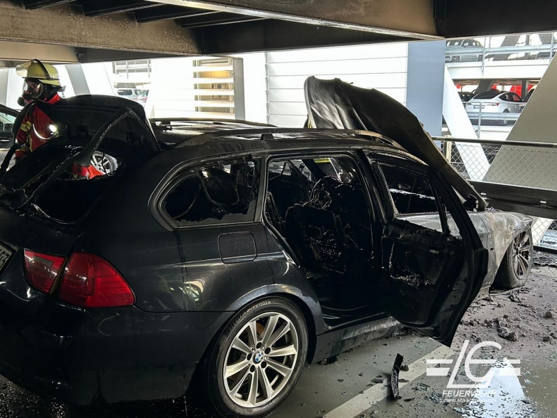 Ein Fahrzeugbrand im Parkhaus über die A 8 auf Höhe der Messe Stuttgart hat am Dienstagnachmittag zur zeitweisen Vollsperrung der Autobahn geführt. Kurz vor 16.30 Uhr rückten die Einsatzkräfte von Feuerwehr, Rettungsdienst und Polizei zu dem mehrstöckigen Bauwerk aus, nachdem eine entsprechende Rauchentwicklung gemeldet worden war. Wie sich in der Folge herausstellte, hatte auf der Parkebene 4 ein abgestellter BMW wohl aufgrund eines technischen Defekts Feuer gefangen, wodurch auch das Parkhaus in Mitleidenschaft gezogen wurde. Ein Feuerwehrmann wurde beim Einsatz verletzt und zur weiteren Untersuchung und Behandlung vom Rettungsdienst ins Krankenhaus gebracht. Am BMW entstand wirtschaftlicher Totalschaden. Der Schaden am Parkhaus kann noch nicht beziffert werden. Im Zuge der Löschmaßnahmen mussten beide Richtungsfahrbahnen der A 8 bis zirka 17 Uhr voll gesperrt werden. Auch die anfangs notwendigen Vollsperrungen der Parallelstraßen konnten wenige Minuten später aufgehoben werden. Auf der Autobahn sowie beim Abreiseverkehr aus dem Parkhaus kam es dennoch zu entsprechend erheblichen Verkehrsbehinderungen.