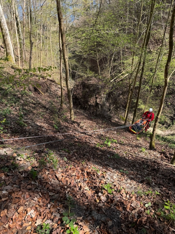 Anschließend wurde der Hundebesitzer durch die Höhenrettung gesichert und zurück auf den Waldweg geführt. Er wurde zur weiteren medizinischen Abklärung an den Rettungsdienst übergeben.