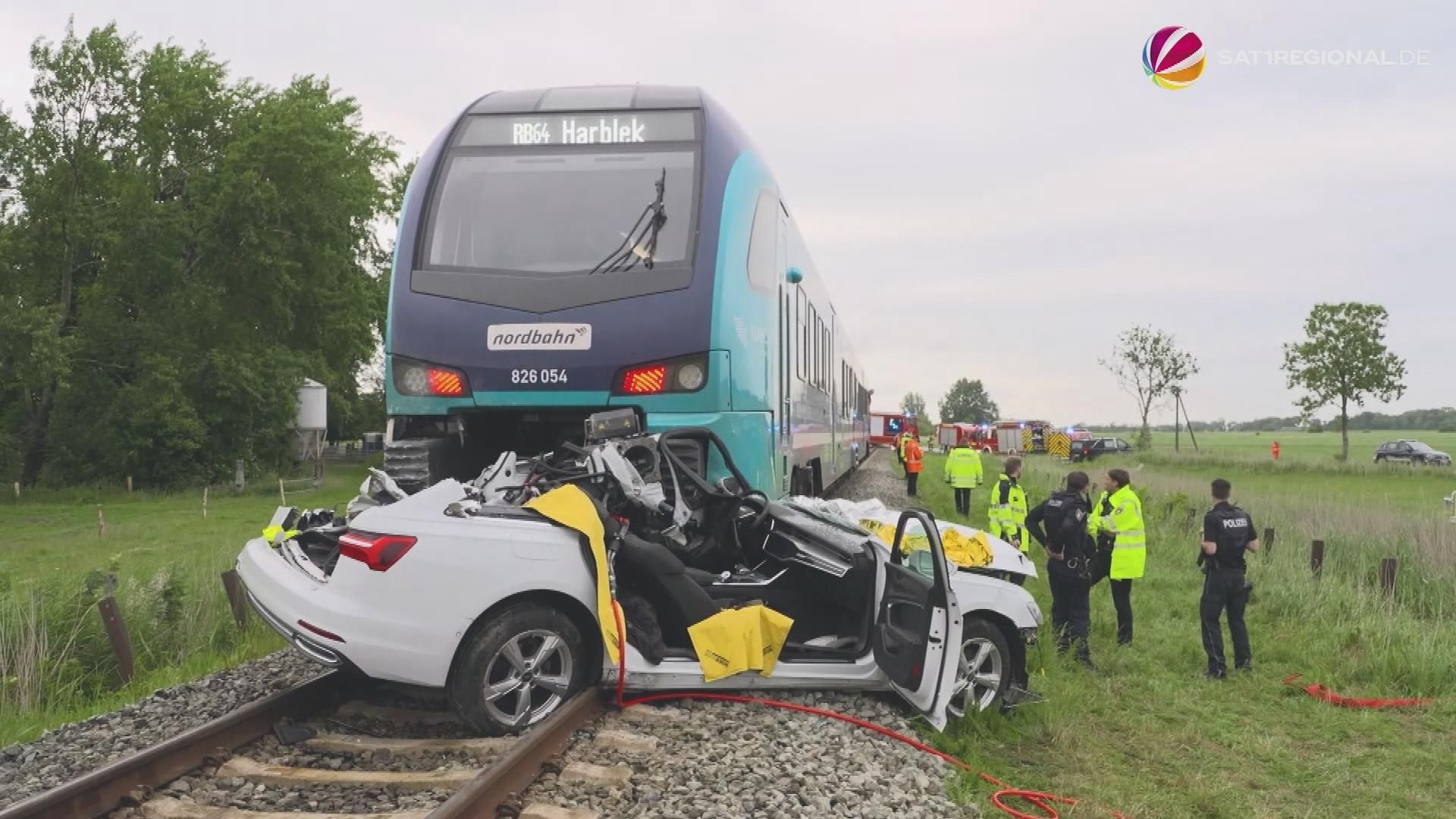 Heute Nachmittag gegen 16.00 Uhr ist es auf der Bahnstrecke von Husum nach St. Peter Ording zur Kollision eines PKW mit einem Zug gekommen.