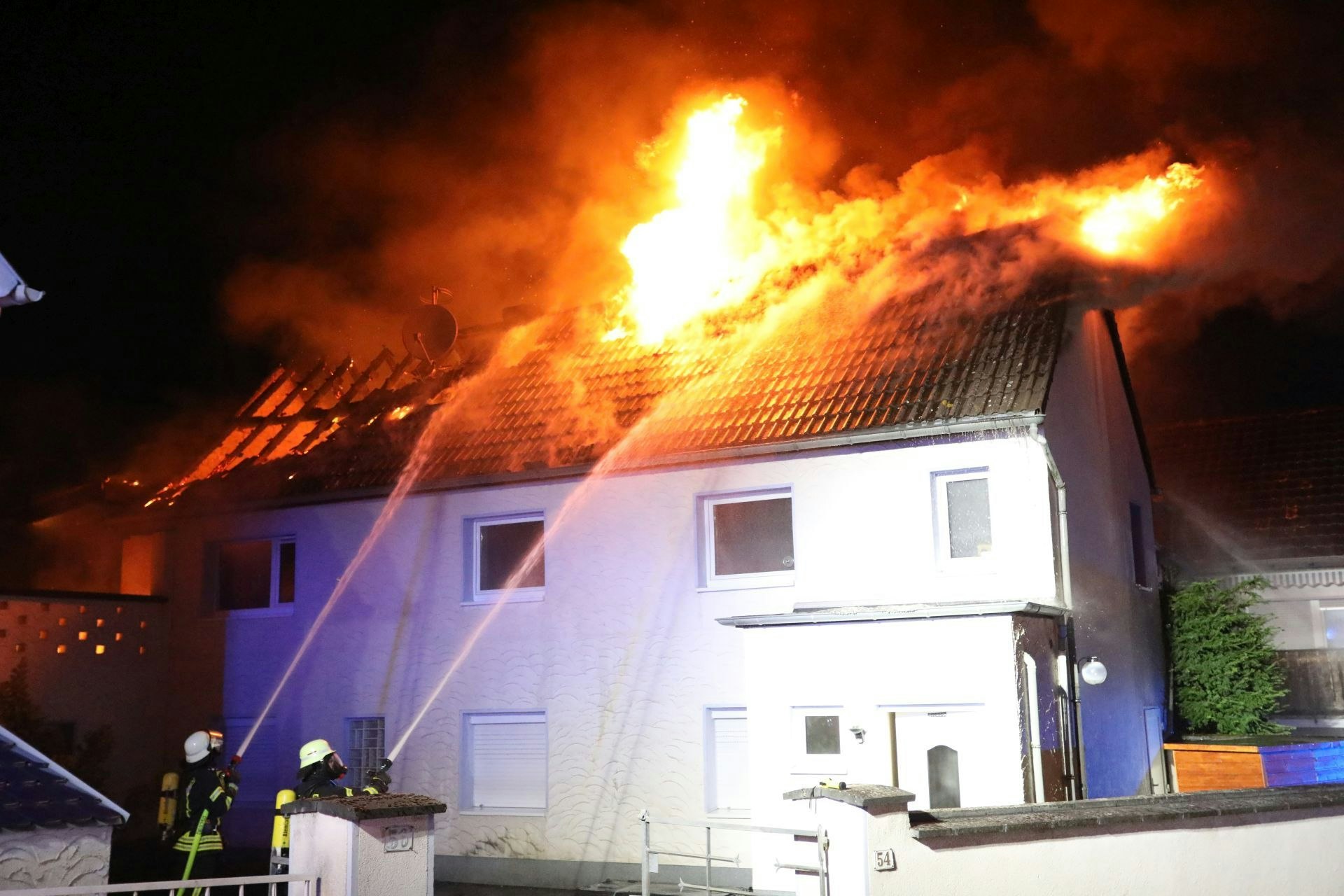 Um 02:41 Uhr am frühen Sonntagmorgen wurde die Freiwillige Feuerwehr Königswinter in die Ölbergstraße alarmiert. Menschenleben sollten bei einem Gebäudebrand in Gefahr sein. Bei Eintreffen der ersten Kräfte stand der Dachstuhl des zweistöckigen Gebäudes in Vollbrand. Der Einsatzleiter traf die Bewohner unverletzt auf der Straße an. In enger Bebauung drohten die Flammen auf Nachbargebäude über zu greifen. Elf Minuten nach der ersten Alarmierung wurde eine Alarmstufenerhöhung auf `Brand 4´ veranlasst. Schwarzer Rauch zog durch die enge Straße. Durch den schnellen Einsatz von bis zu fünf Rohren konnte eine Brandausbreitung erfolgreich verhindert werden. Mit einer Riegelstellung wurde ein nur knapp einen Meter entferntes Gebäude geschützt. Die Drehleiter wurde auf der Straße in Stellung gebracht. Es wurden vier Einsatzabschnitte gebildet. Die Brandbekämpfung wurde über zwei Seiten geführt. Die zwei Bewohner und Nachbarn, wurden vom Rettungsdienst gesichtet. Alle Personen blieben unverletzt. Bereits um 03:14 Uhr konnte der Leitstelle "Feuer unter Kontrolle" gemeldet werden. Mit einer Drohne und deren Wärmebildkamera konnten Glutnester aus der Luft lokalisiert werden. Über die Drehleiter von außen und mit Trupps über das Gebäude wurden Nachlöscharbeiten durchgeführt. Um die mit Brandschmutz kontaminierten Atemschutztrupps zu versorgen, wurde durch die Hygieneeinheit eine Reinigungsstelle eingerichtet. Die Bereitschaft des Kreisfeuerwehrhauses brachte neue Atemschutzgeräte an die Einsatzstelle. Das Haus ist stark geschädigt und unbewohnbar. Durch das Ordnungsamt werden die betroffenen Bewohner in einem Hotel untergebracht.