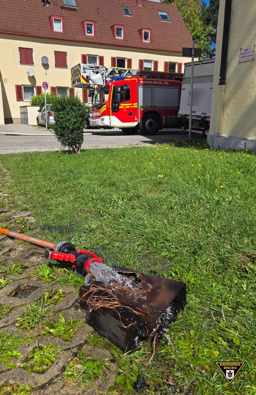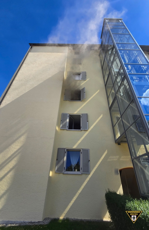 Als die ersten Kräfte der Feuerwehr München an der Alarmadresse eintrafen, drang bereits Rauch aus einem Fenster und in das Treppenhaus des Wohngebäudes. Eine Bewohnerin erwartete die Feuerwehr bereits im Freien und schilderte, dass ein Akku Feuer gefangen hatte, der Brand sich aber noch auf ein Zimmer beschränke. Ein Atemschutztrupp ging daraufhin mit einem Rohr über das Treppenhaus in das zweite Obergeschoss zur Brandbekämpfung vor. Um eine weitere Brandausbreitung zu verhindern, wurde ein sogenannter Rauchschutzvorhang an der Wohnungstür angebracht und ein Lüfter am Hauseingang eingesetzt. Das Feuer konnte rasch gelöscht werden, allerdings war die gesamte Wohnung verraucht. Nach einer Kontrolle mit der Wärmebildkamera wurden die Räumlichkeiten stromlos geschaltet und die Einsatzstelle an die Polizei übergeben.
