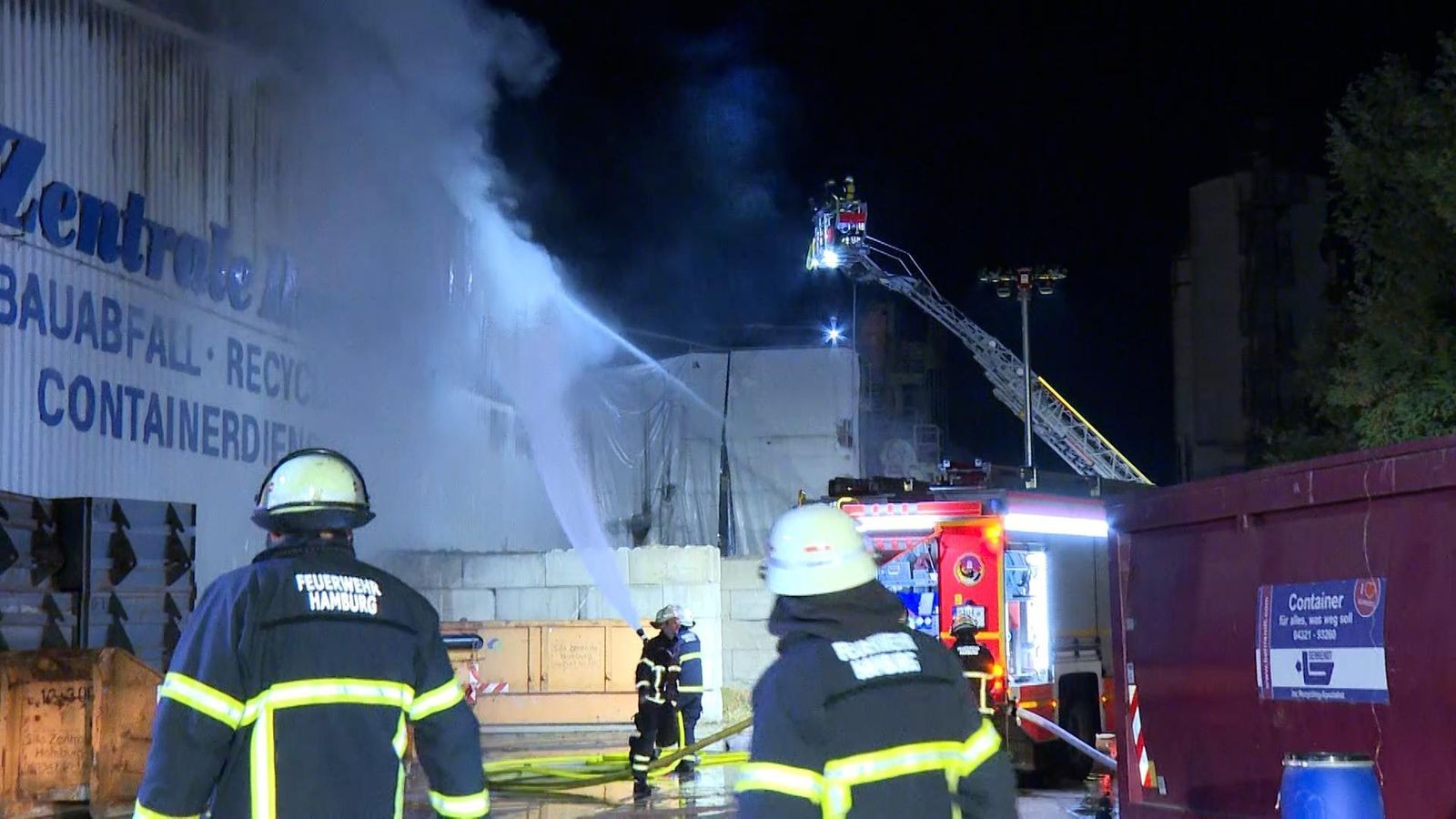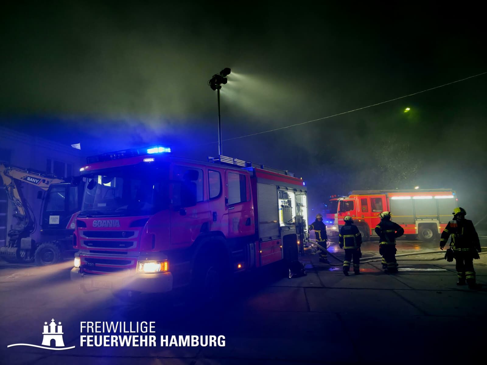 Beim Eintreffen der ersten Kräfte der zuständigen Feuer- und Rettungswache Stellingen brannten Bauschutt und Gewerbeabfälle unter einer Schleppdachhalle. Auch Teile der Halle selbst waren vom Feuer betroffen.