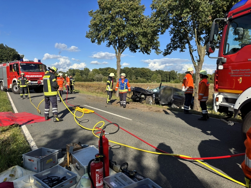 Am vergangenen Sonntag (14.09.2025) wurde die Feuerwehr kurz nach 15:30 Uhr zu einem Verkehrsunfall mit einer eingeklemmten Person in der Nähe der Ortschaft Steine alarmiert.