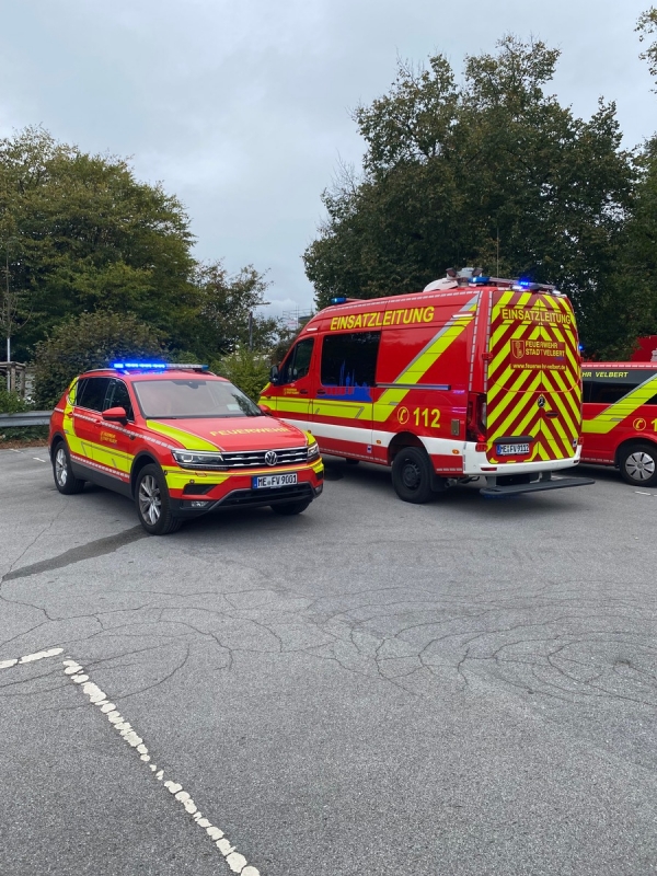 Im #EinsatzfürVelbert waren die Einsatzbereich Velbert-Mitte und -Neviges sowie der Rettungsdienst der Stadt Velbert direkt an der Einsatzstelle. Die Löschzüge Velbert-Langenberg stellte währenddessen den Grundschutz für das Stadtgebiet von der Hauptwache aus sicher. Zudem war die Drohneneinheit sowie die Hygienekomponente der Feuerwehr Velbert an der Einsatzstelle.