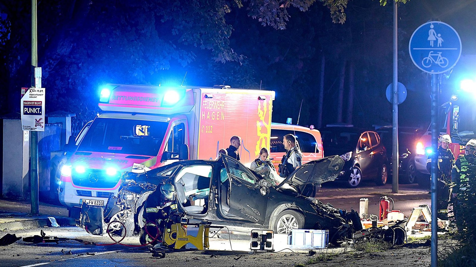 In der Nacht zum Donnerstag wurde die Feuerwehr Hagen gegen 00:50 zu einem Verkehrsunfall im Ortsteil Haspe alarmiert. Über den Notruf 112 wurde ein verunfallter Pkw mit vermutlich mehreren eingeklemmten Personen gemeldet. Durch die Leitstelle der Feuerwehr wurden umgehend zahlreiche Kräfte von Feuerwehr und Rettungsdienst zur Unfallstelle entstand. Nach erster Erkundung bestätigte sich, dass sich in dem beschädigten Fahrzeug insgesamt drei schwer verletzte Personen befanden. Der Rettungsdienst versorgte die Patienten noch im Fahrzeug, parallel dazu wurde durch die Feuerwehr die technische Rettung vorbereitet. Zwei Personen konnten durch die Einsatzkräfte aus dem Fahrzeug befreit werden. Eine Patientin wurden nach weiterer Versorgung mit einem Rettungshubschrauber nach Bochum, die zweite mittels RTW, in ein Hagener Krankenhaus transportiert. Dem dritten Patienten konnte nicht mehr geholfen werden, er verstarb noch an der Unfallstelle. Die Feuerwehr unterstützte später bei der Bergung der Person aus dem Fahrzeug. Eingesetzt waren Kräfte beider Wachen der Berufsfeuerwehr, der Hagener Rettungsdienst und zwei Rettungshubschrauber.