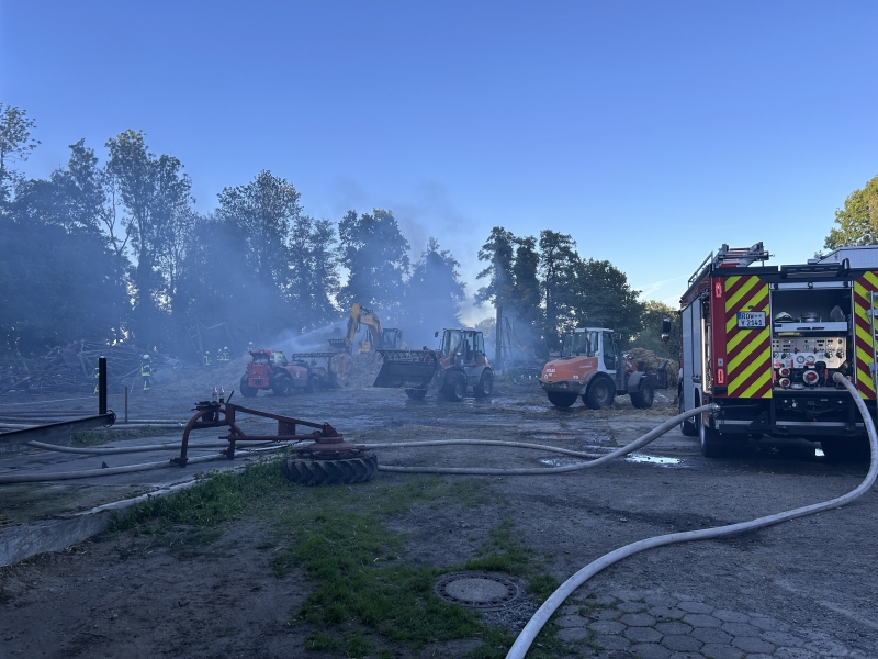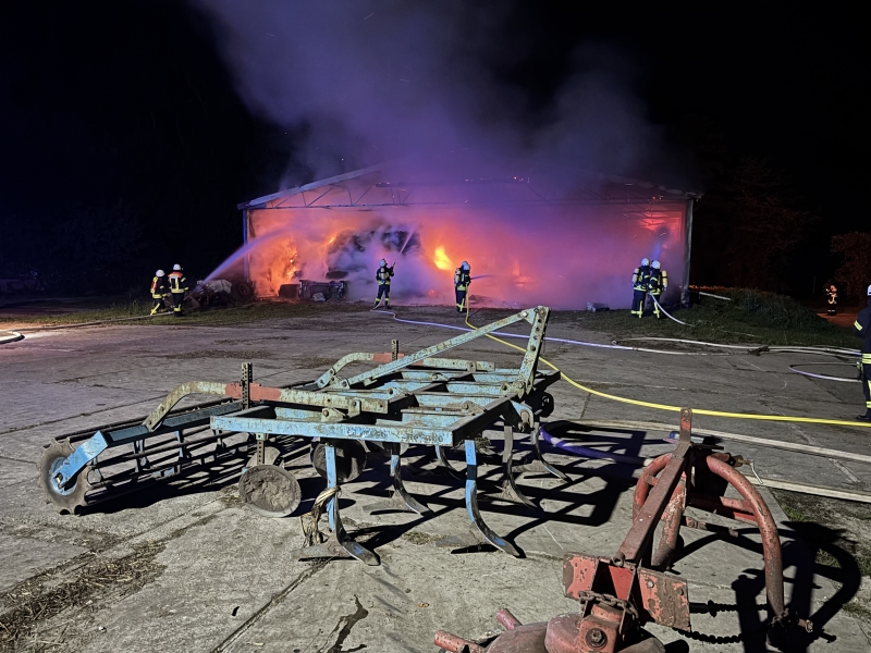 In den frühen Morgenstunden des 24. September 2025 wurden mehrere Feuerwehren gegen 2 Uhr zu einem Brand eines landwirtschaftlichen Gebäudes alarmiert. Beim Eintreffen der ersten Kräfte stand eine Scheune, in der hauptsächlich Stroh gelagert war, bereits in Vollbrand. Das Gebäude befand sich im hinteren Bereich eines größeren landwirtschaftlichen Betriebes.
