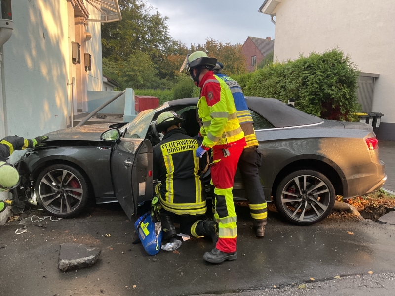 Die Einsatzkräfte der Feuerwache 9 (Mengede) und des Rettungsdienstes konnten die Frau gemeinsam ohne den Einsatz technischer Rettungsgeräte aus ihrem Auto befreien. Die Frau wurde in ein Krankenhaus transportiert. Die Unfallursache hat vermutlich einen medizinischen Hintergrund. Andere Personen wurden nicht verletzt.