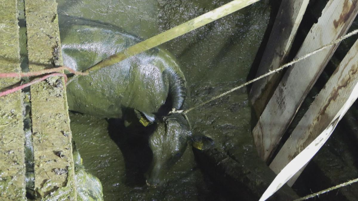 Erste Meldungen gingen zunächst von vier betroffenen Tieren aus. Vor Ort stellte der Einsatzleiter jedoch fest, dass insgesamt sechs Jungrinder in der Grube standen. Um den Tieren helfen zu können, wurden die eingestürzten Betonspaltenböden entfernt und die Gülle durch den Landwirt schrittweise abgepumpt. Ohne diese Maßnahme wäre eine Rettung kaum möglich gewesen, da die Tiere bis zum Hals in der Gülle standen.