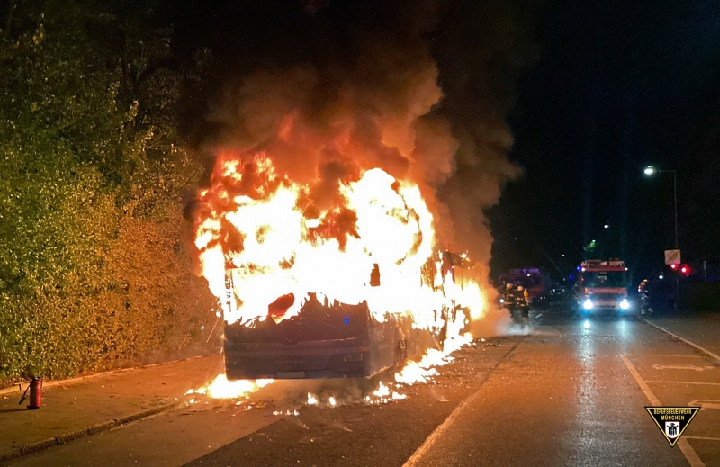 In den frühen Morgenstunden ist trotz Löschmaßnahmen des Fahrers und der Feuerwehr München ein Bus komplett ausgebrannt.