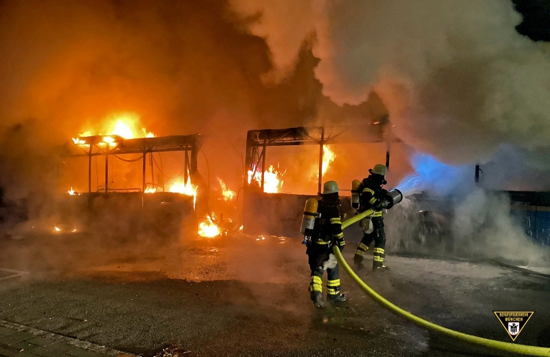 Über einen brennenden Bus gingen am Mittwochmorgen mehrere Anrufe in der Leitstelle München ein. Sie schilderten einen in Vollbrand stehenden Stadtbus, auf Bäume übergegriffene Flammen sowie Schäden an nahestehenden Gebäuden.