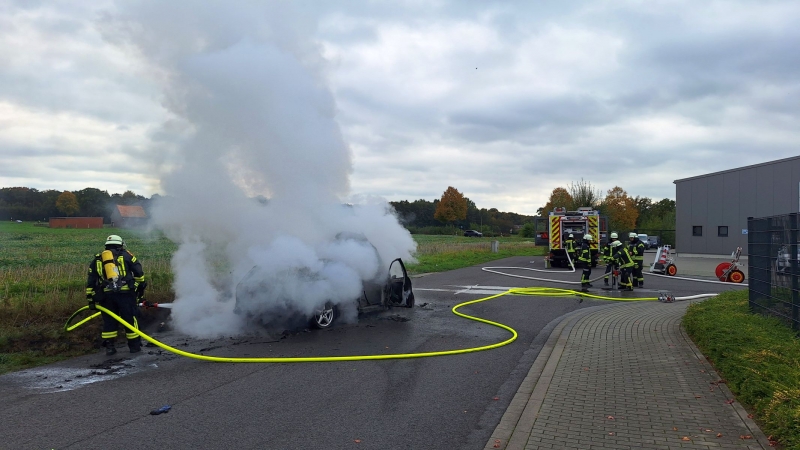 In einem Sonsbecker Gewerbegebiet brannte ein Fahrzeug in voller Ausdehnung. Personen wurden nicht verletzt.