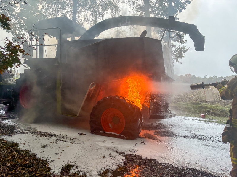 Da sich die Maschine auf einem Feldweg befand, bestand für die umliegende Vegetation keine größere Gefahr. Zunächst wurde mit Wasser gelöscht, im weiteren Verlauf kam Schaum zum Einsatz, um eine tiefere Brandbekämpfung durchzuführen. Der Löschschaum erstickt das Feuer und dringt in schwer zugängliche Bereiche der Maschine ein, um verbliebene Glutnester effektiv abzulöschen.
