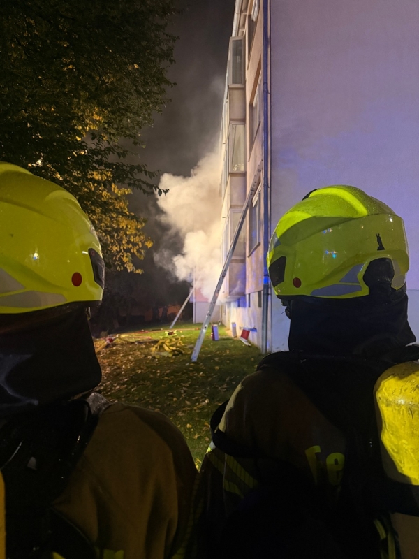 Unter den Geretteten befanden sich auch acht Kinder, die über die Drehleiter in Sicherheit gebracht wurden, da der Treppenraum vollständig mit Brandrauch gefüllt war.
