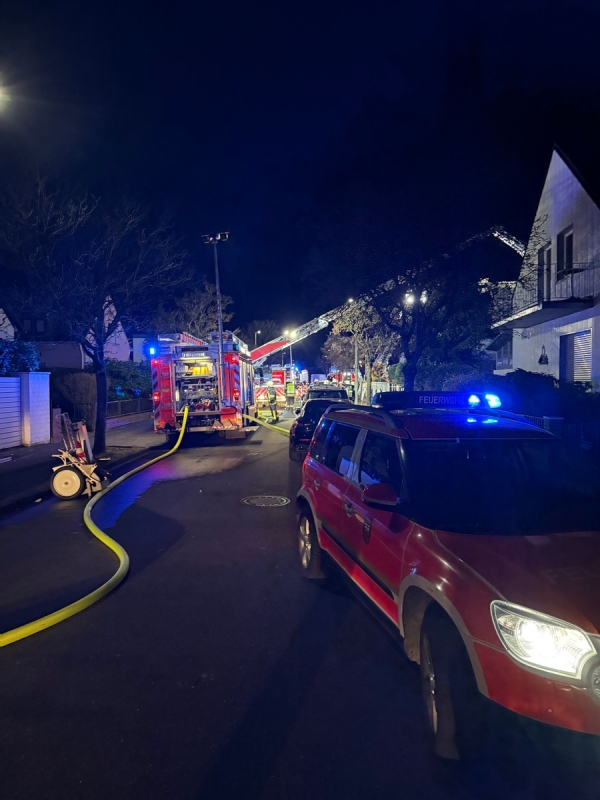 Anschließend wurde das Feuer, welches bereits auf Teile des Dachstuhls übergegriffen hatte im Außenangriff über zwei Drehleitern und einem Löschrohr, sowie im Innenangriff durch mehrere Trupps unter Atemschutz bekämpft.