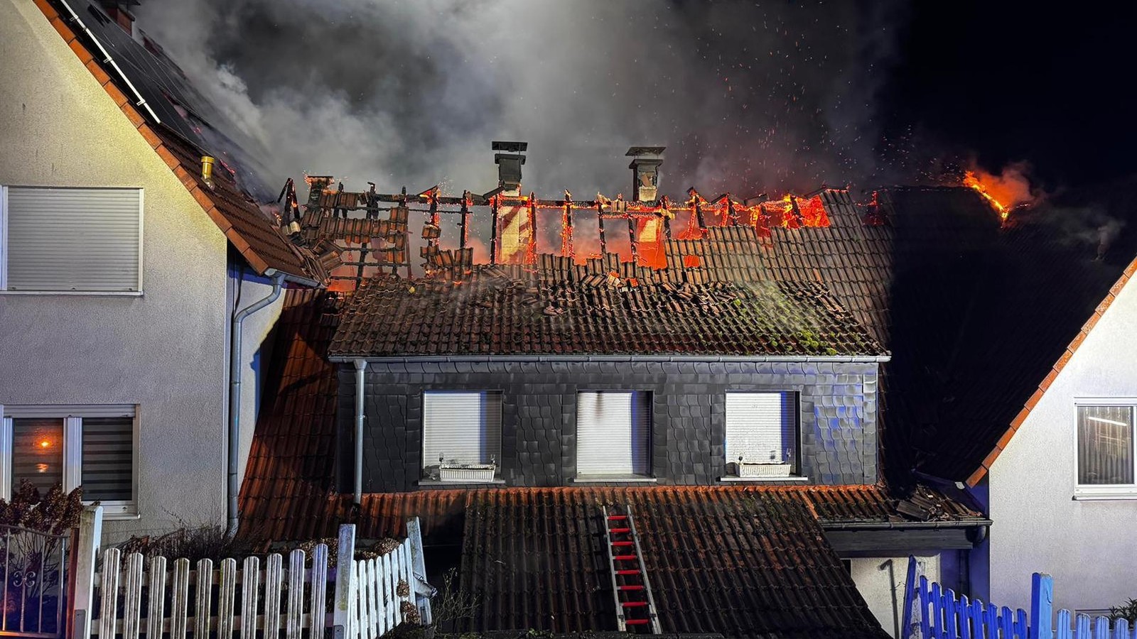 Hohes Einsatzaufkommen für Feuerwehr und Rettungsdienst zum Jahreswechsel, darunter auch ein Großbrand und Verletzungen durch Feuerwerkskörper. Im Tagesverlauf gab es für den Rettungsdienst mit über vierzig Einsätzen bereits ein erhöhtes Einsatzaufkommen. Mit dem Jahreswechsel mussten auch die Einsatzkräfte der Berufsfeuerwehr, unterstützt von Einheiten der Freiwilligen Feuerwehr, zu mehreren Einsätzen ausrücken. So brannten mehrere Kraftfahrzeuge an verschiedenen Stellen im Stadtgebiet, weiter wurden mehrere Kleinbrände gemeldet, unter anderem brannten Tannenbäume an einer Schule auf Emst sowie mehrere Mülleimer und Böllerreste an verschiedenen Einsatzstellen. In der Straße zur Höhe musste die Feuerwehr einen ausgedehnten Dachstuhlbrand an mehreren zusammenhängenden Gebäuden bekämpfen, dort waren zahlreiche Trupps unter Atemschutz und insgesamt neun Strahlrohre im Einsatz. Um die Wasserversorgung sicherzustellen wurde Löschwasser über Schlauchleitungen von der Selbeckerstr. herangeführt, verletzt wurde zum Glück niemand. Leider kam es auch in diesem Jahr wieder zu Verletzungen durch Feuerwerkskörper, darunter waren Handverletzungen, Gesichtsverletzungen und auch Knalltraumata. Positiv ist anzumerken, dass keine Angriffe auf Rettungskräfte gemeldet wurden. Fazit: Für alle Einsatzkräfte eine kräftezehrende Schicht.